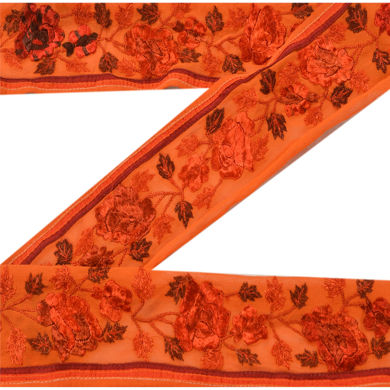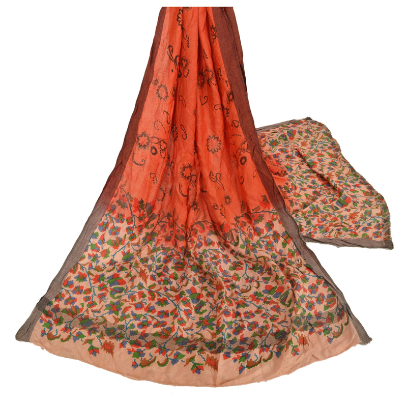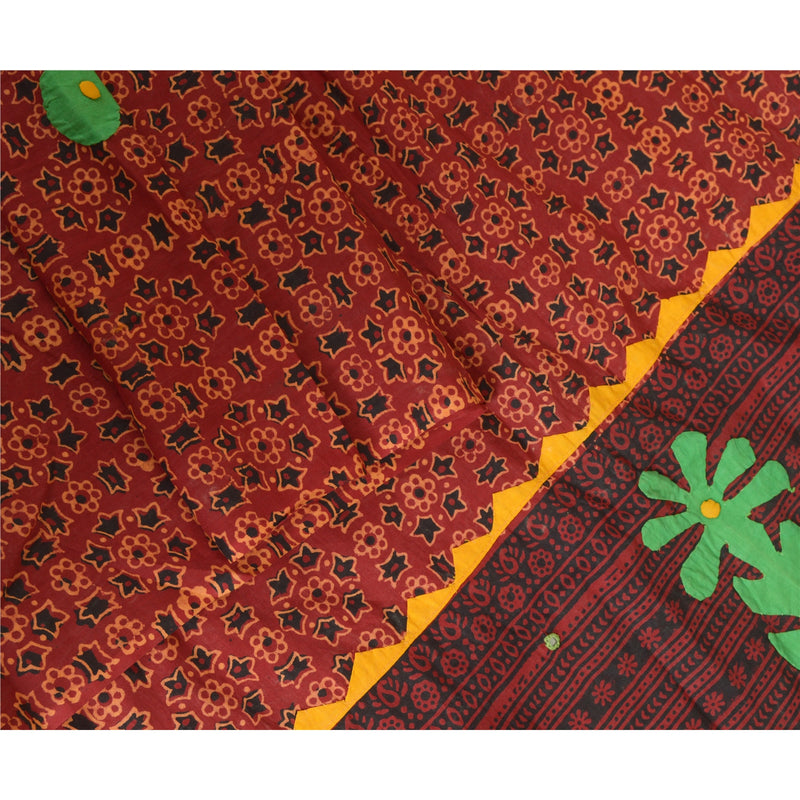Sanskriti Vintage Indian Brown Sarees Pure Silk Hand Embroidered Sari 5yd Fabric