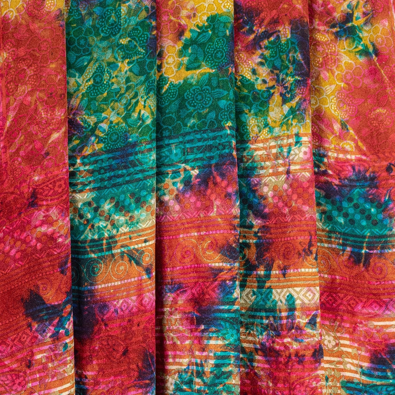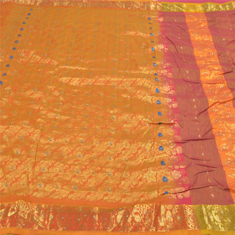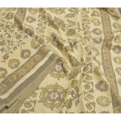 Sanskriti Vintage Sarees Yellow Pure Crepe Floral Print 6YD Sari For Crafters