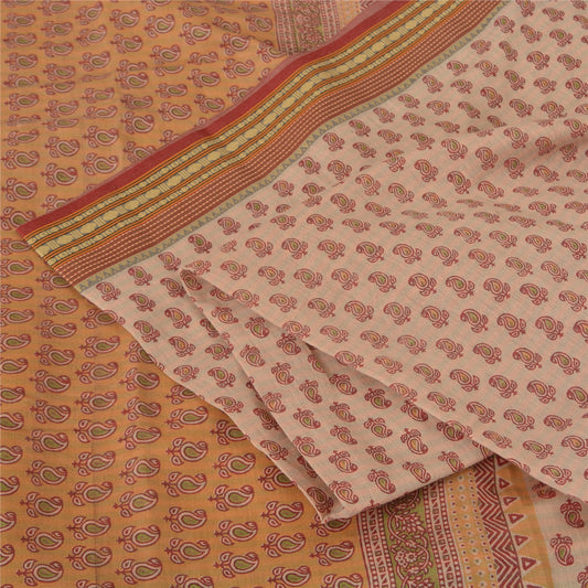 Sanskriti Vintage Sarees Ivory Hand Block Printed Pure Cotton Sari Craft Sustainable Fabric