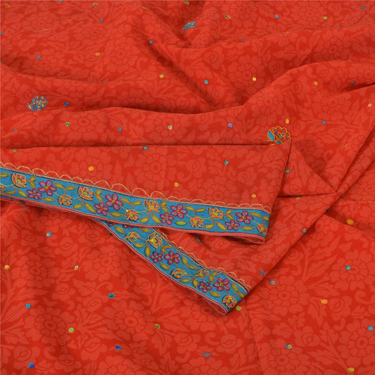 Sanskriti Vintage Orange Sarees Chiffon Embroidered Bagh Phulkari Sari Sustainable Fabric