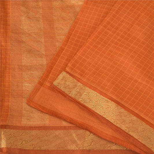 Sanskriti Vintage Orange Sarees 100% Pure Silk Woven Premium Sari Craft Sustainable Fabric