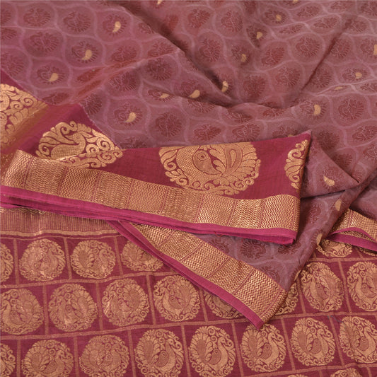 Sanskriti Vintage Sarees Indian Purple Woven Pure Silk Sari Floral Craft Sustainable Fabric