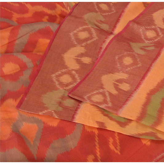 Sanskriti Vintage Red/Grey Indian Sarees Pure Cotton Woven Ikat Sari Sustainable Fabric