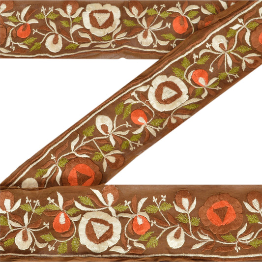 Sanskriti Vintage Sari/Saree Border Embroidered Zari 1 YD Trim Brown 3W Ribbon