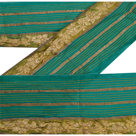 Sanskriti Vintage Sari Border Hand Beaded Zardozi 1 YD Trim 2.5 W Green Lace