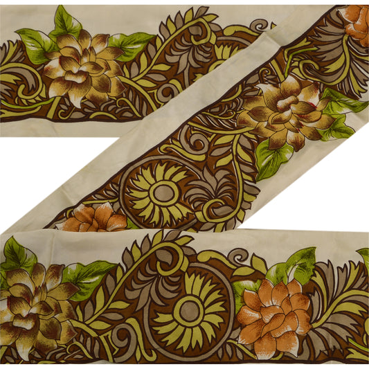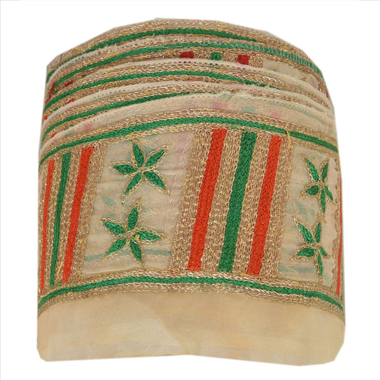 Sanskriti Vintage Sari Border Embroidered 1 YD Trim Sewing Cream Craft Lace