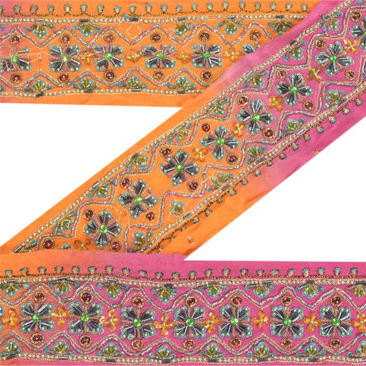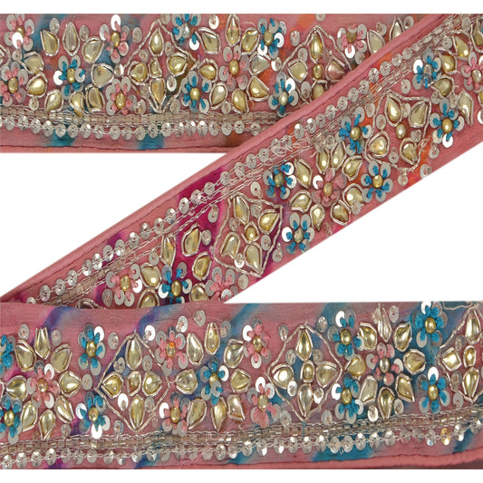 Sanskriti Vintage Sari Border Hand Bead Zardozi Dabka Craft Trims Lace 1YD Pink