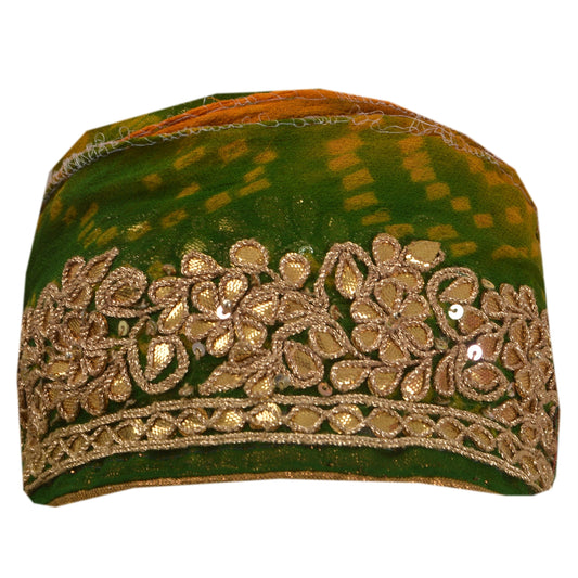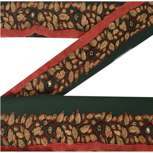 Sanskriti Vintage 1 YD Sari Border Hand Beaded Zardozi Trim Green 1.5W Lace