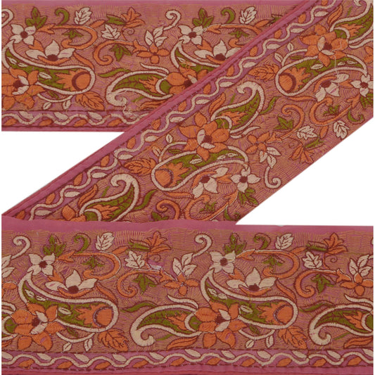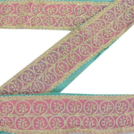 Sanskriti Vintage Sari Border Antique Hand Beaded 1YD Trim Zari Pink Craft Lace