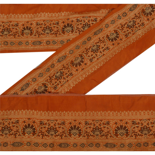 Sanskriti Vintage 1 YD Sari Border Woven Baluchari Trim Sewing Craft Orange Lace