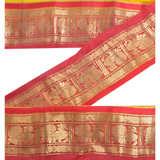 Sanskriti Vintage Sari Border Hand Beaded 1 YD Indian Trim Sewing Red Zari Lace