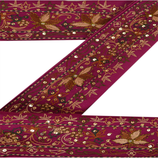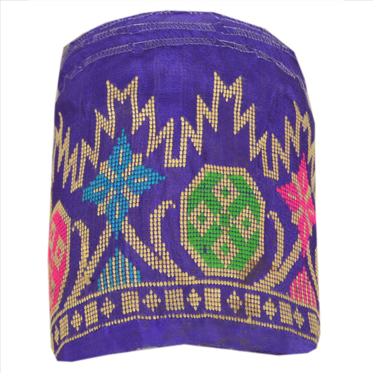 Sanskriti Vintage 1YD Sari Border Hand Beaded Zari ChiffonTrim Purple Craft Lace