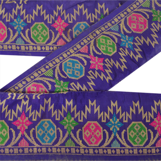 Sanskriti Vintage Sari Border Woven Brocade 1 YD Trim Craft Sewing Blue 4W Lace