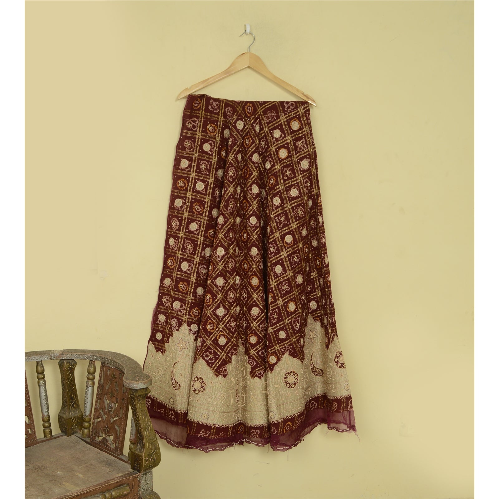 Sanskriti New Dark Red Pure Cotton Long Skirt Unstitched Hand Bead Bandhani Zari Zardozi Dabka