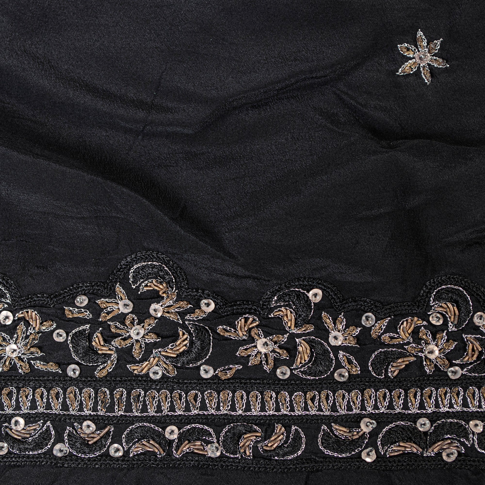 Sanskriti Vintage Black Pure Silk Dupatta Long Stole Hand Beaded Zardozi Scarves