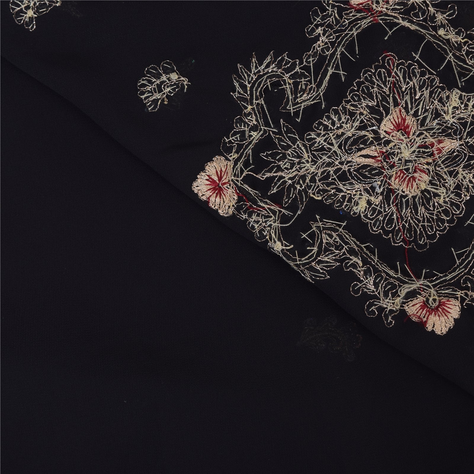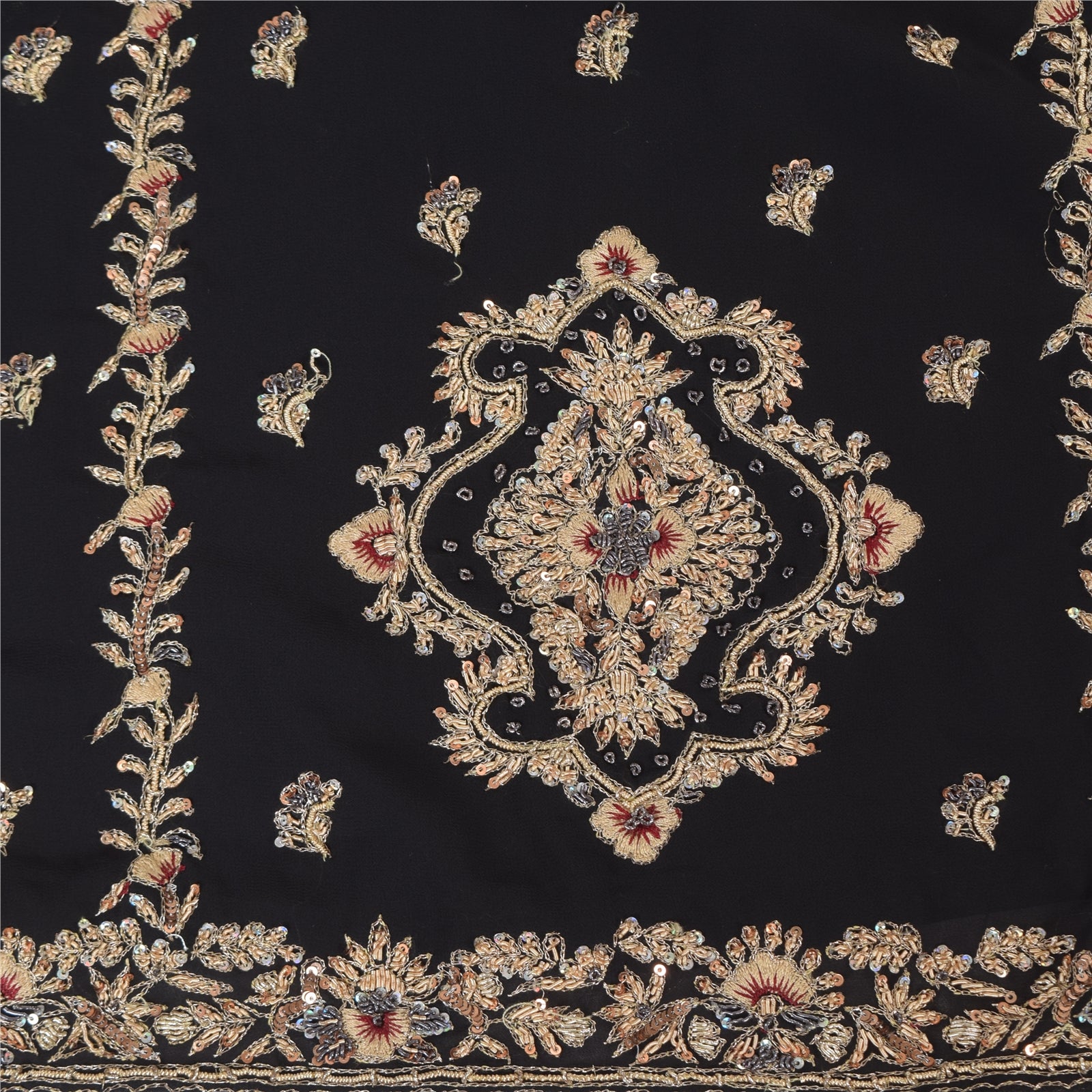 THE ITEM COLOR OR SHADE MAY BE DARKER OR LIGHTER THAN THE PICTURE.' An Awesome Sari In georgette Black Colored Hand Embroidered Sari/Fabric. Pallu & Border Features floral design embellished with metallic zari/dabka work, golden/black zardozi work, silver sequins work, red & cream color thread work. You Can See Center Portion Of The Sari Has Similar Thread Work With Floral Design. This unique vintage saree can be used for various crafting ideas for example design a dress, use it as a throw, as window dressing, upholstery, table linen and much more. Let your creative juices flow and use this decorated fabric in multiple fashion Shipping note: International buyers please note: Import duties, taxes, and charges are not included in the item price or postage cost. These charges are the buyer's responsibility. Please check with your country's customs office to determine what these additional costs will be prior to bidding or buying. Buyer will pay custom duty/tax. It is calculated and charged differently by every country. As a seller I do not have any control over it. VAT or sales tax is calculated by the platform at the time of checkout. Customs charge is payable at the time of delivery. SKU: HS-7151