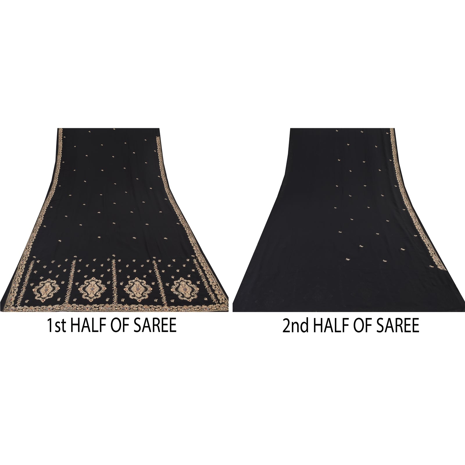 Sanskriti Vintage Black Sarees Georgette Hand Beaded Ethnic Sari 5ydCraft Fabric