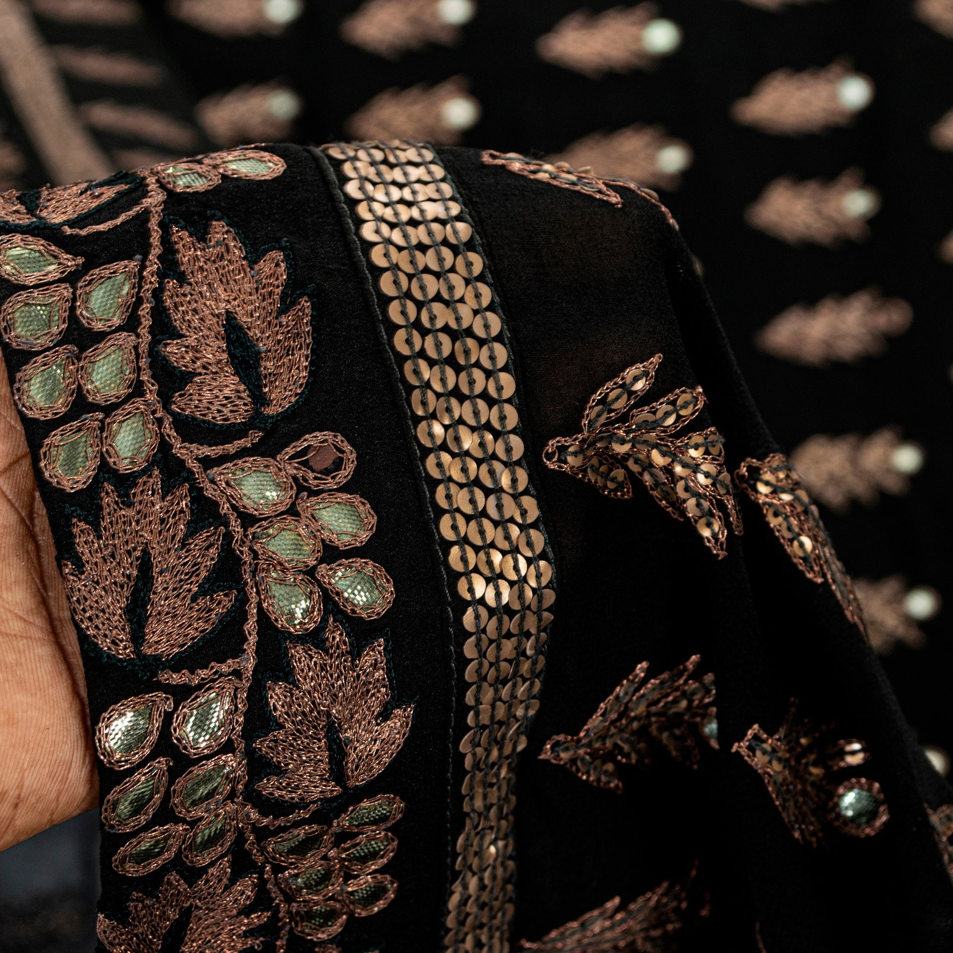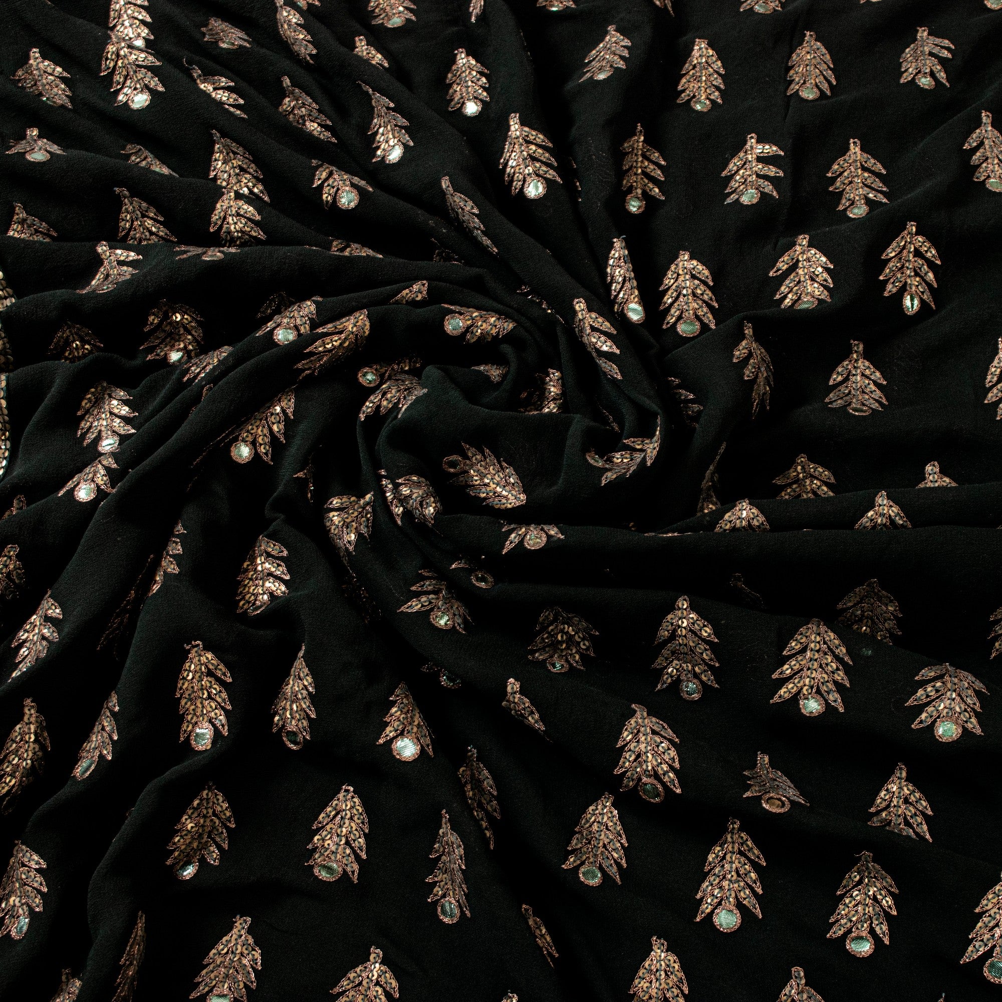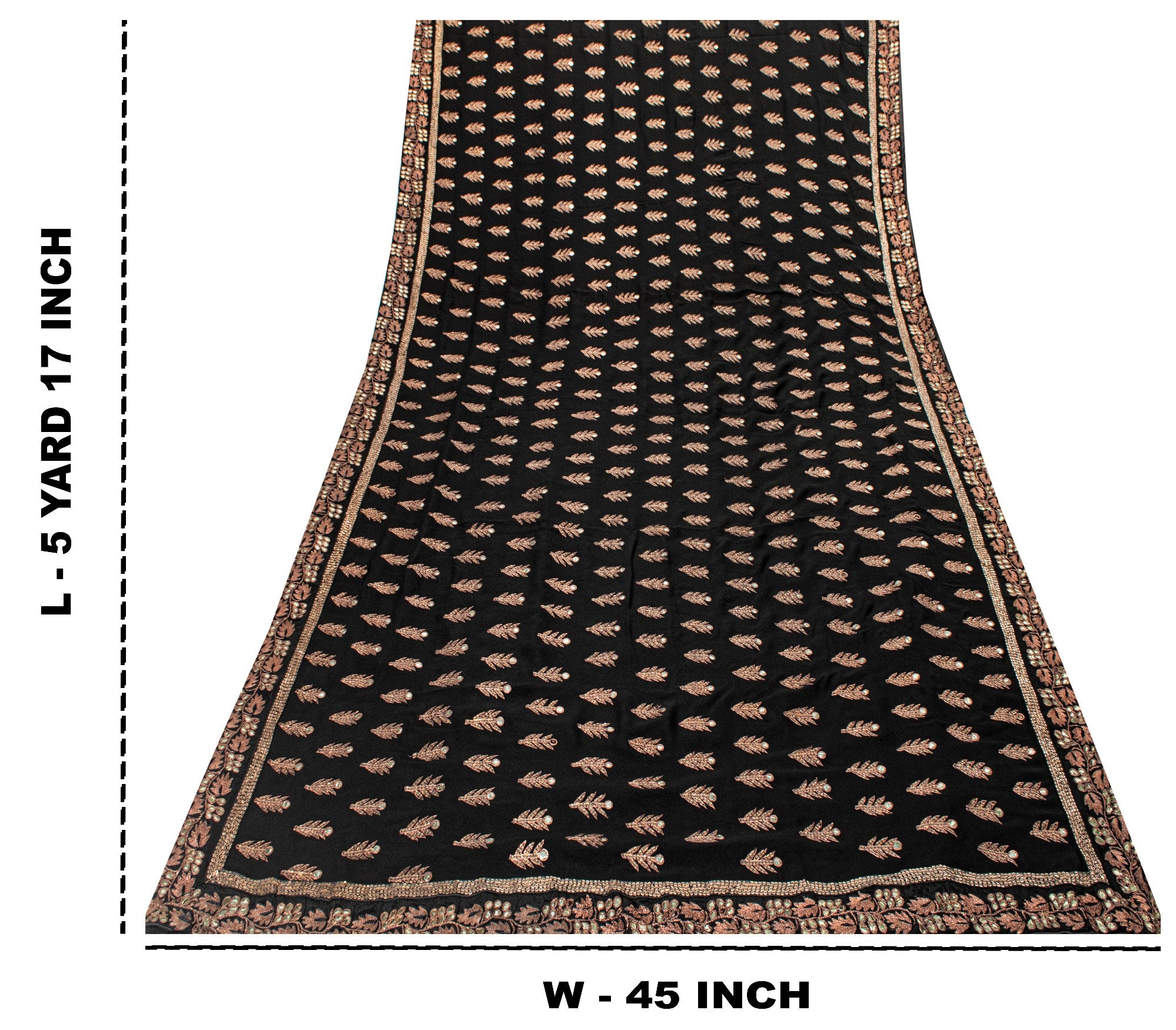 Fantastic black colored pure georgette silk embroidered sari. Floral design with copper pure metallic zari, gota patti & sequins work on pallu, border & Leaf design with sequins work in center part of saree. Versatile Uses-Crafting, Repurpose, Creative Sewing Project, Dressmaking, Kaftans, Use It As A Saree Window Dressing, Upcycling, Sarongs, Throw,Table Linen,Decorative Fabric, Sustainable Indian Fabric. THE ITEM COLOR OR SHADE MAY BE DARKER OR LIGHTER THAN THE PICTURE.' International buyers please note: Import duties, taxes, and charges are not included in the item price or postage cost. Buyer will pay custom duty/tax,VAT, and any applicable charges at the time of delivery. HS-7084