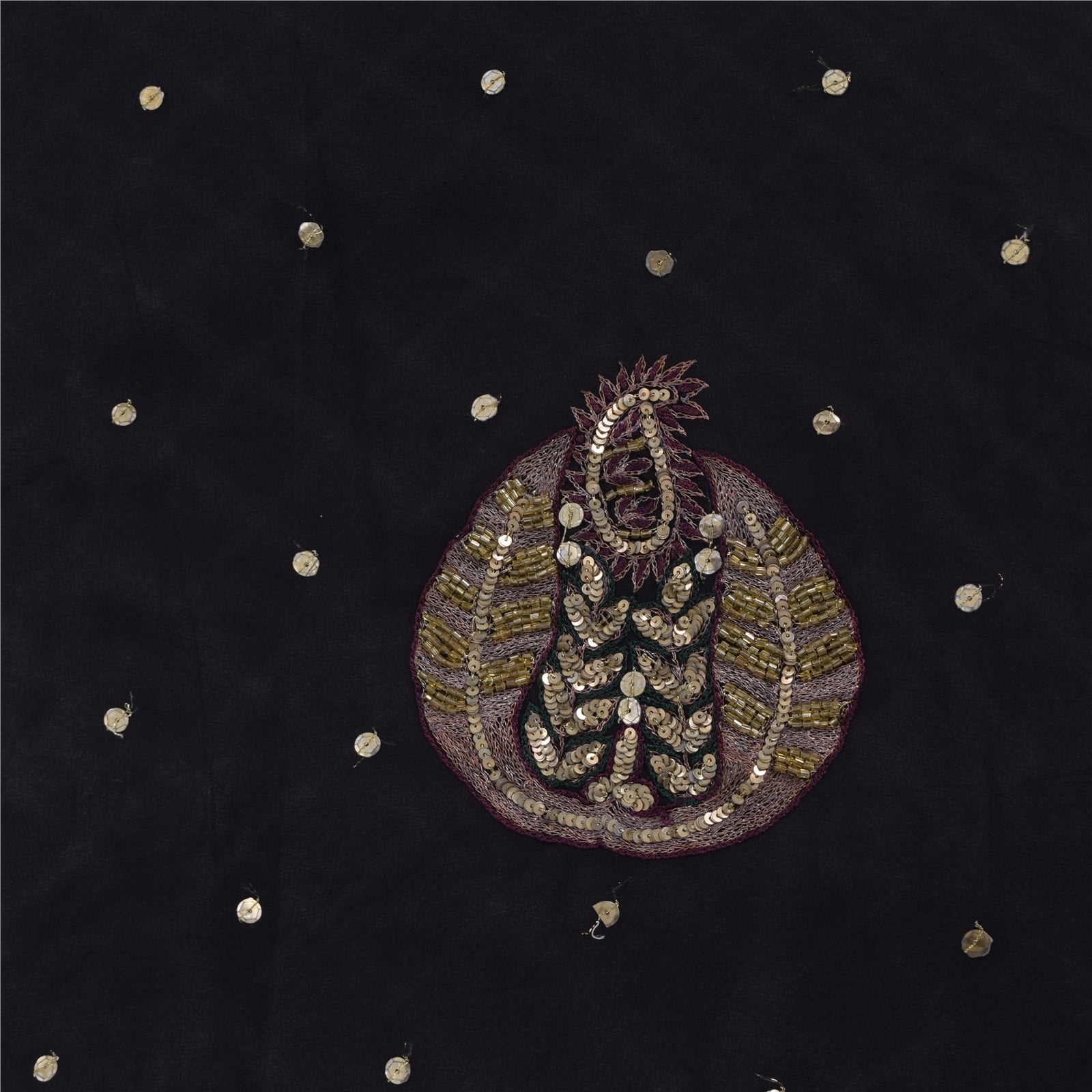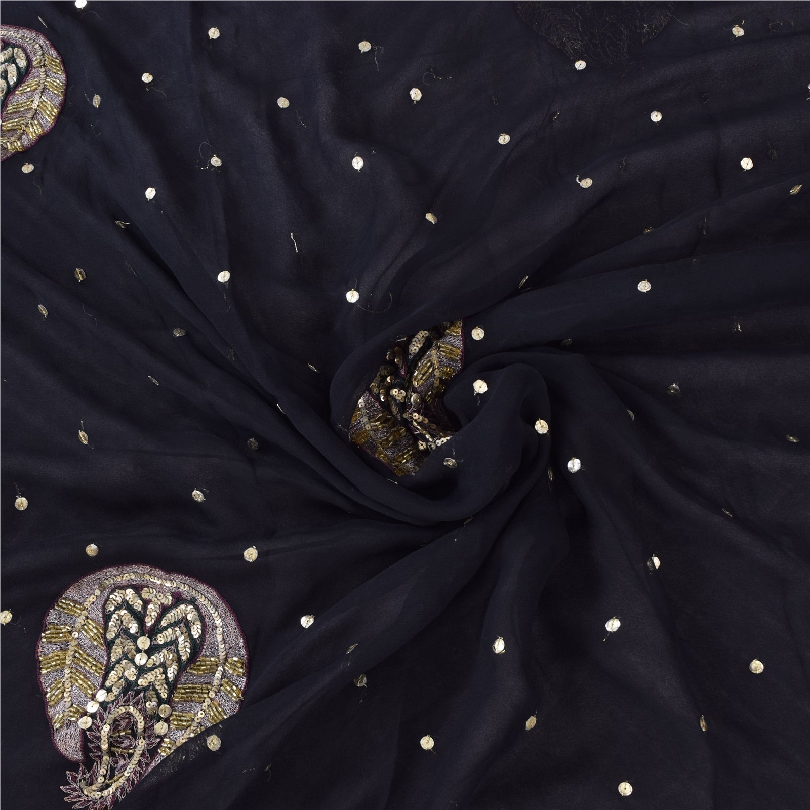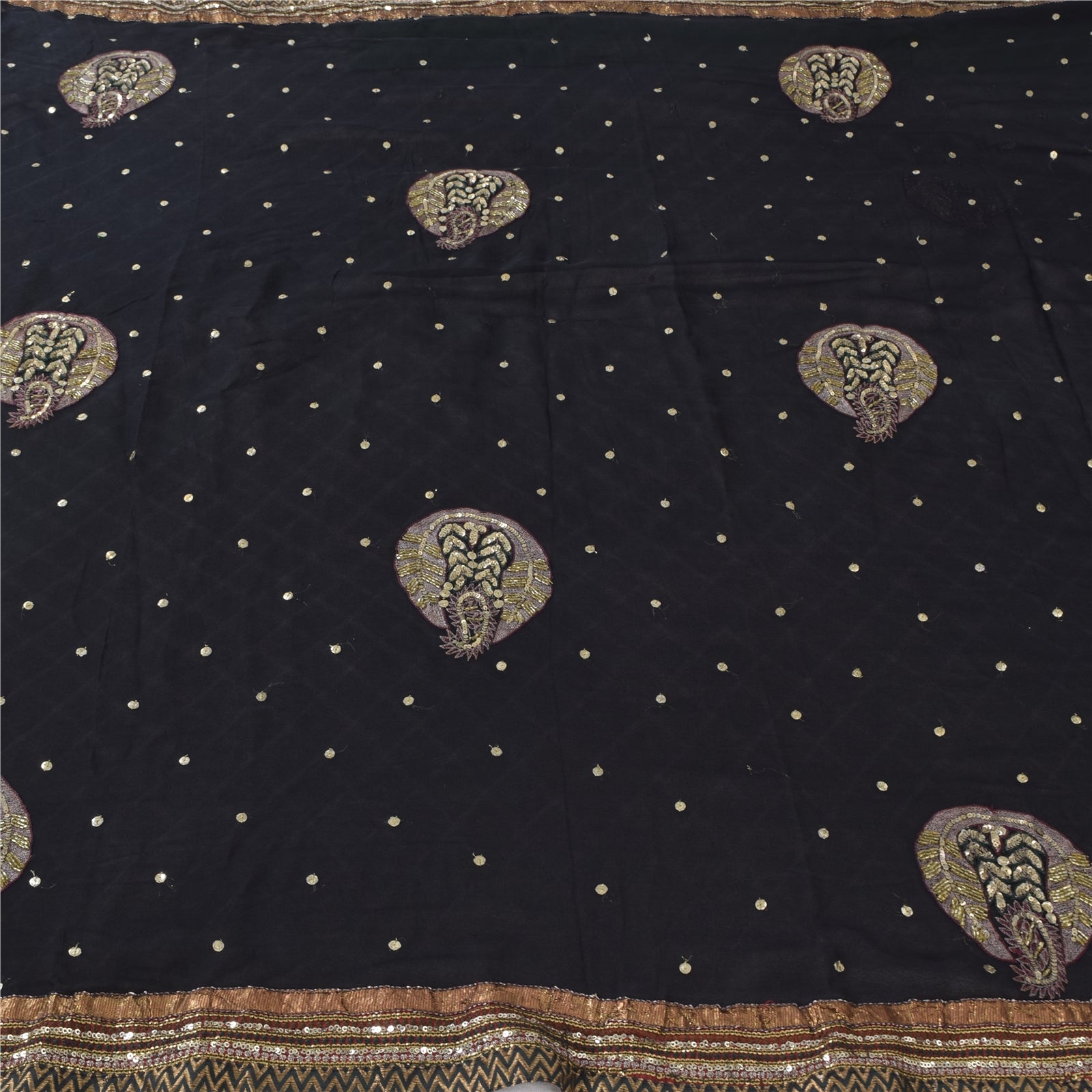 Sanskriti Vintage Black Sarees Pure Georgette Hand Bead Sequins Sari 6 YD Fabric