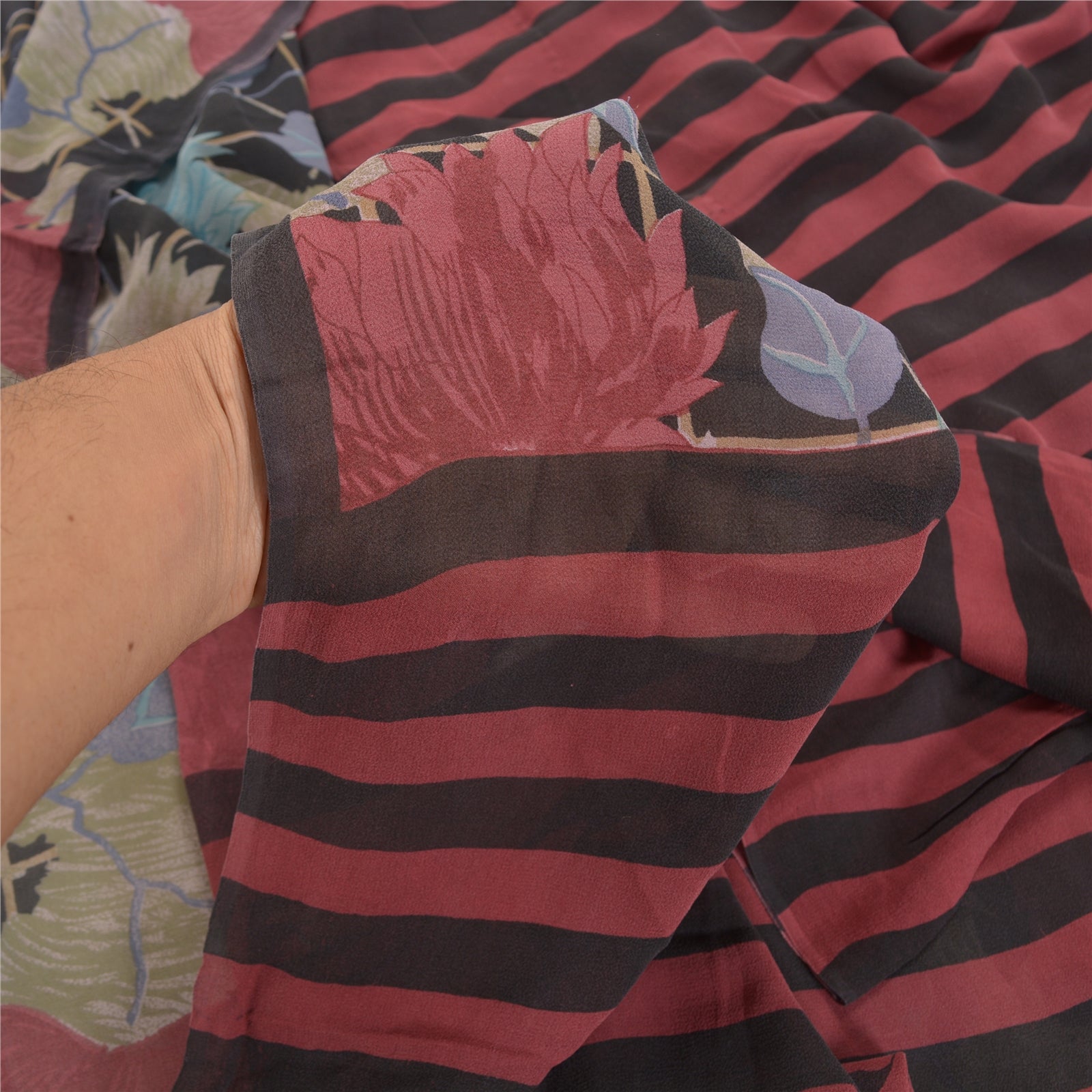Sanskriti Vintage Sorte Sarier Ren Georgette Silke Trykt Sari 5YD Håndværk Bæredygtigt Stoff