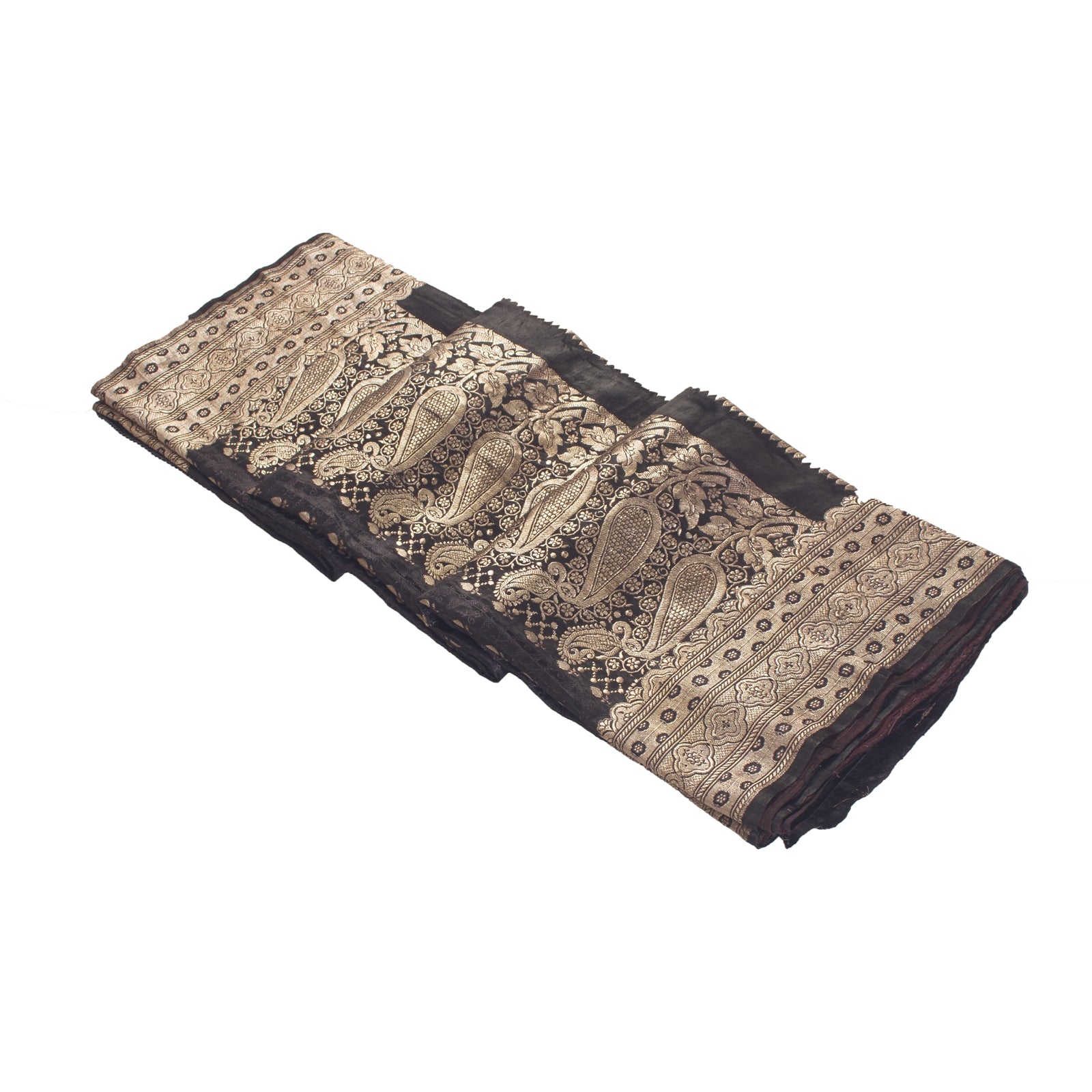 'THE ITEM COLOR OR SHADE MAY BE DARKER OR LIGHTER THAN THE PICTURE.' What a stunning saree highlighting zari work. Base fabric is pure satin hand embroidered woven brocade/banarasi in black color. Zari woven work in antique gold looks amazing. You can see pallu & border has floral & paisley design adorned with metallic golden zardozi work makes the saree look fabulous. The center part of the sari has similar zari work floral design. This unique vintage saree can be used for various crafting ideas even if you don't want to use it as a sari. Design a dress, use it as a throw, as window dressing, upholstery, table linen and much more. Let your creative juices flow and use this decorated fabric in multiple fashion. This unique vintage saree can be used for various crafting ideas even if you don't want to use it as a sari. Design a dress, use it as a throw, as window dressing, upholstery, table linen and much more. Let your creative juices flow and use this decorated fabric in multiple fashion. 'International buyers please note:Import duties, taxes, and charges are not included in the item price or postage cost. These charges are the buyer's responsibility. Please check with your country's customs office to determine what these additional costs will be prior to bidding or buying. Buyer will pay custom duty/tax. It is calculated and charged differently by every country. As a seller I do not have any control over it.VAT or sales tax is calculated by the platform at the time of checkout. Customs charge is payable at the time of delivery. BHS-2324
