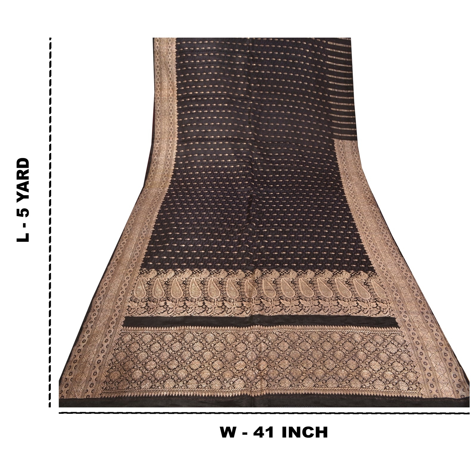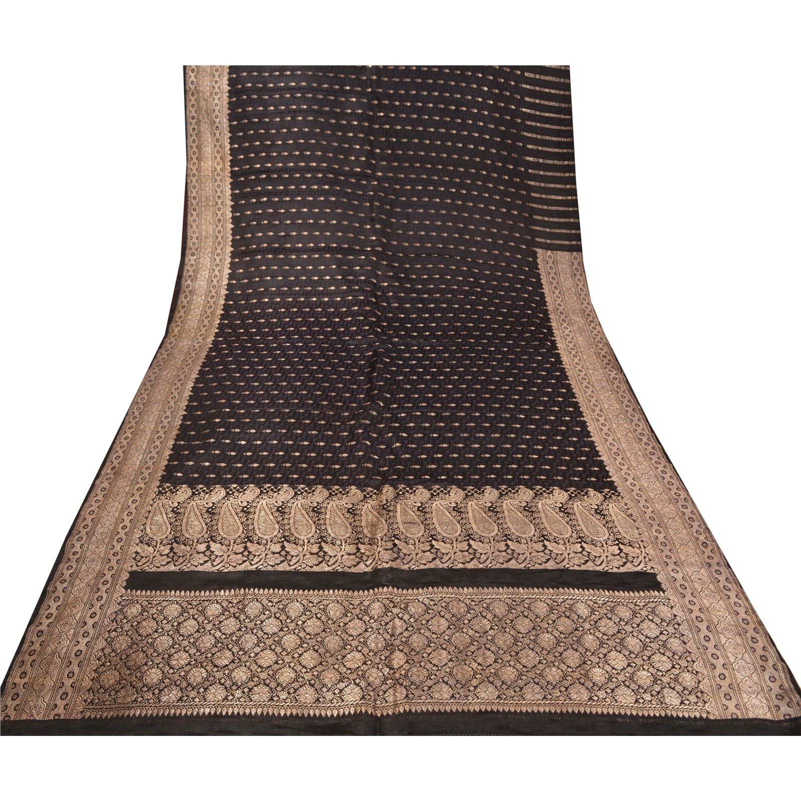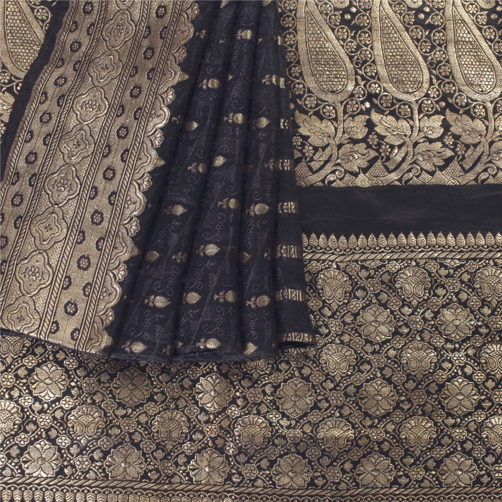 Sanskriti Vintage Black Sarees Pure Satin Woven Brocade/Banarasi Sari Fabric