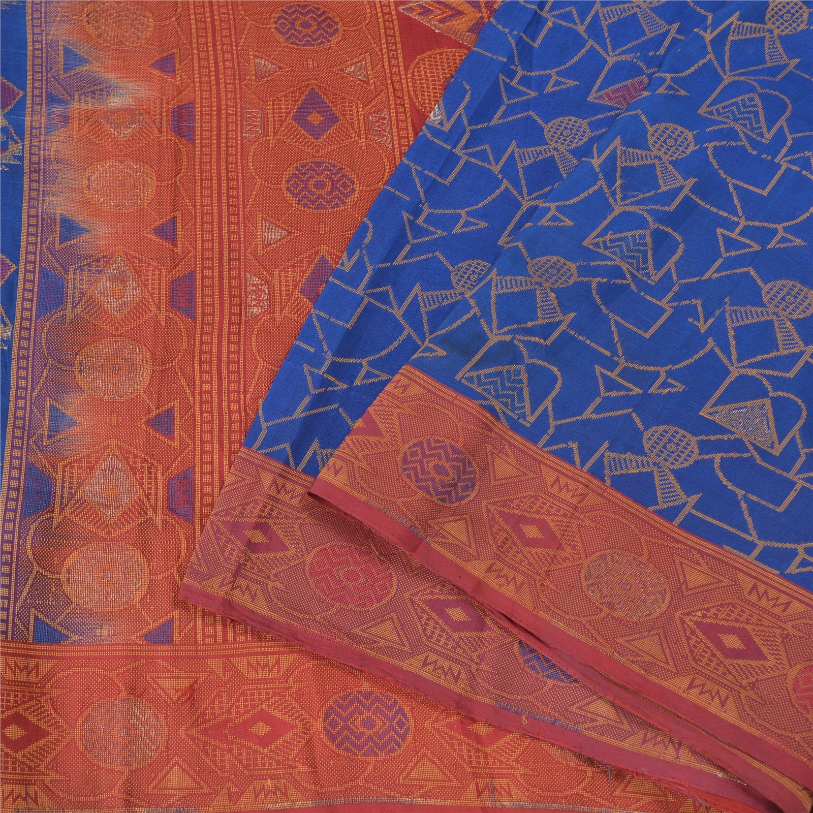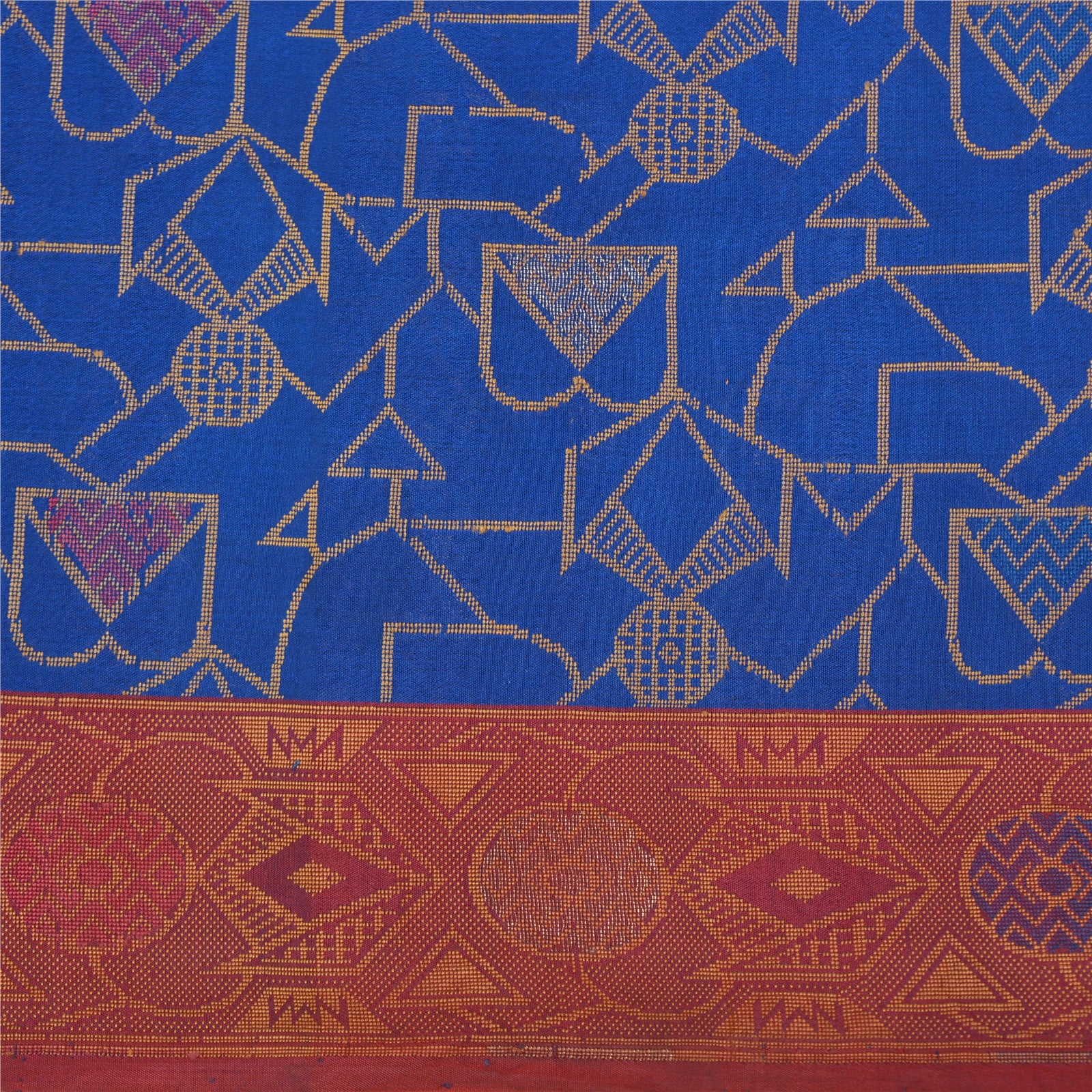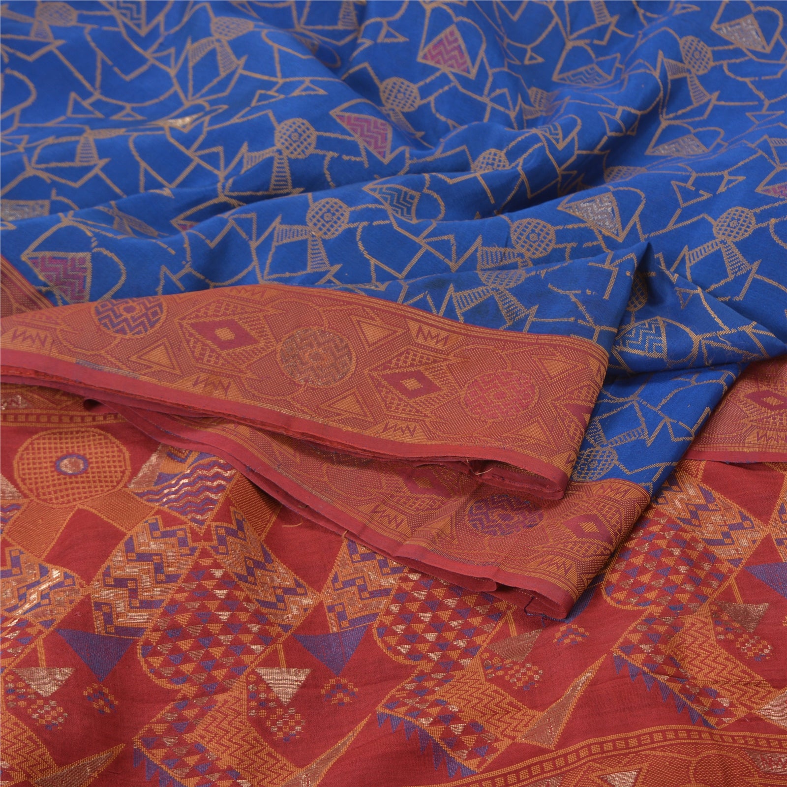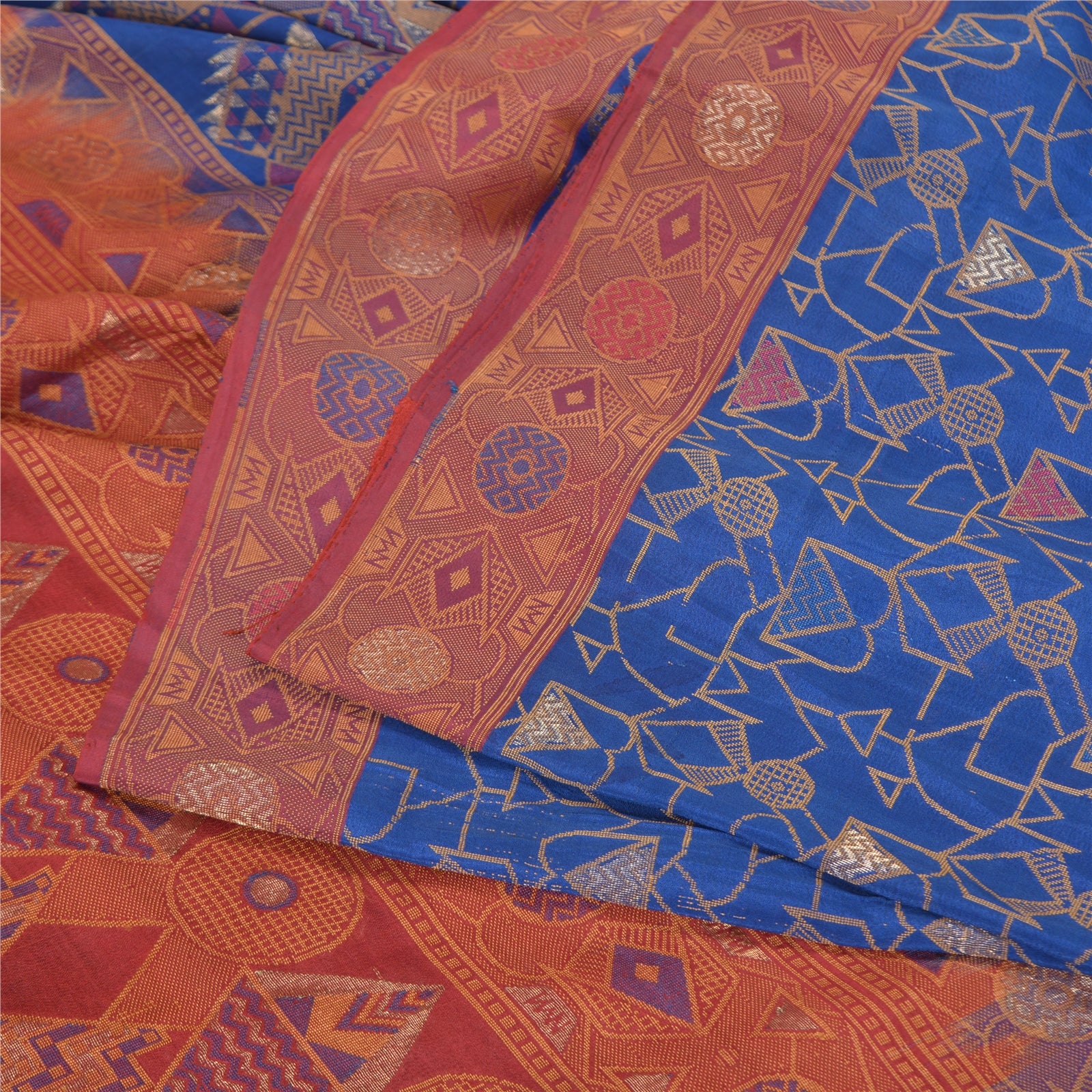 Sanskriti Vintage Blå/Mørkerøde Sarier 100% Ren Silke Vævet Tanchoi Sari Bæredygtigt Stof