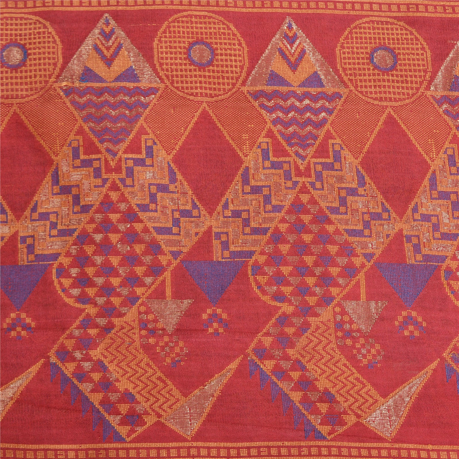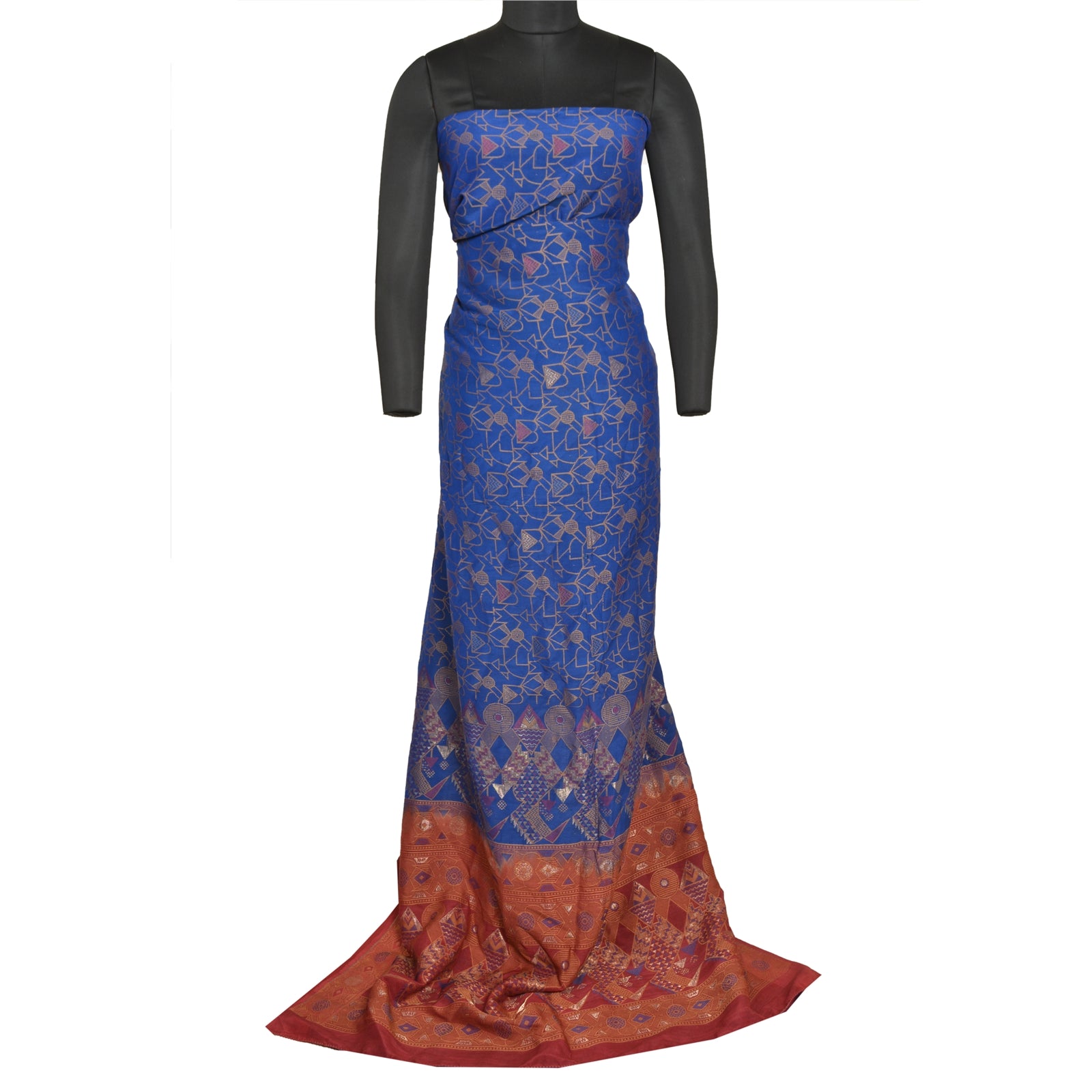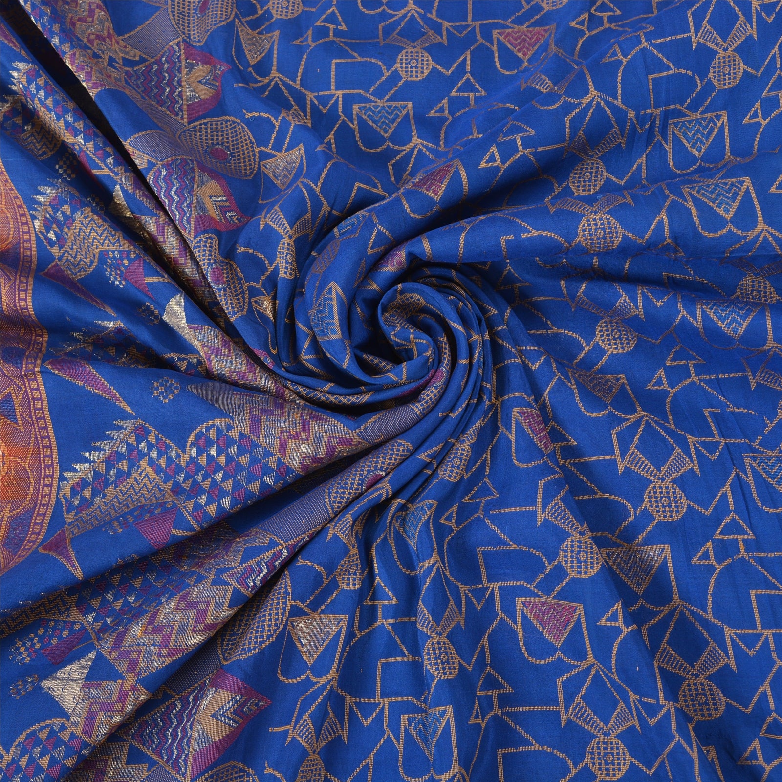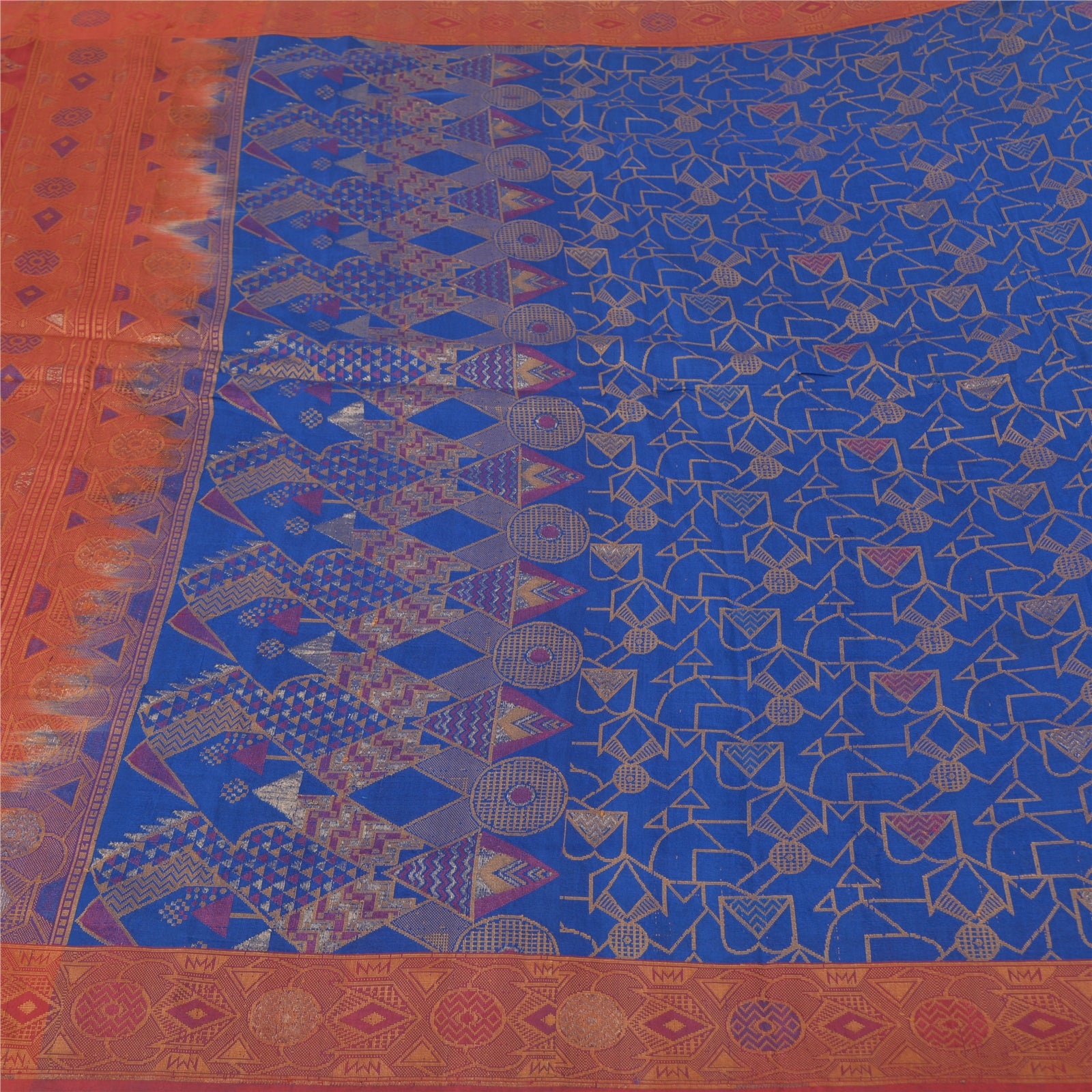 Sanskriti Vintage Blå/Mørkerøde Sarier 100% Ren Silke Vævet Tanchoi Sari Bæredygtigt Stof