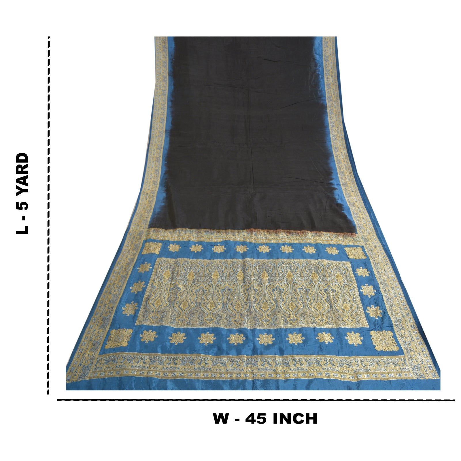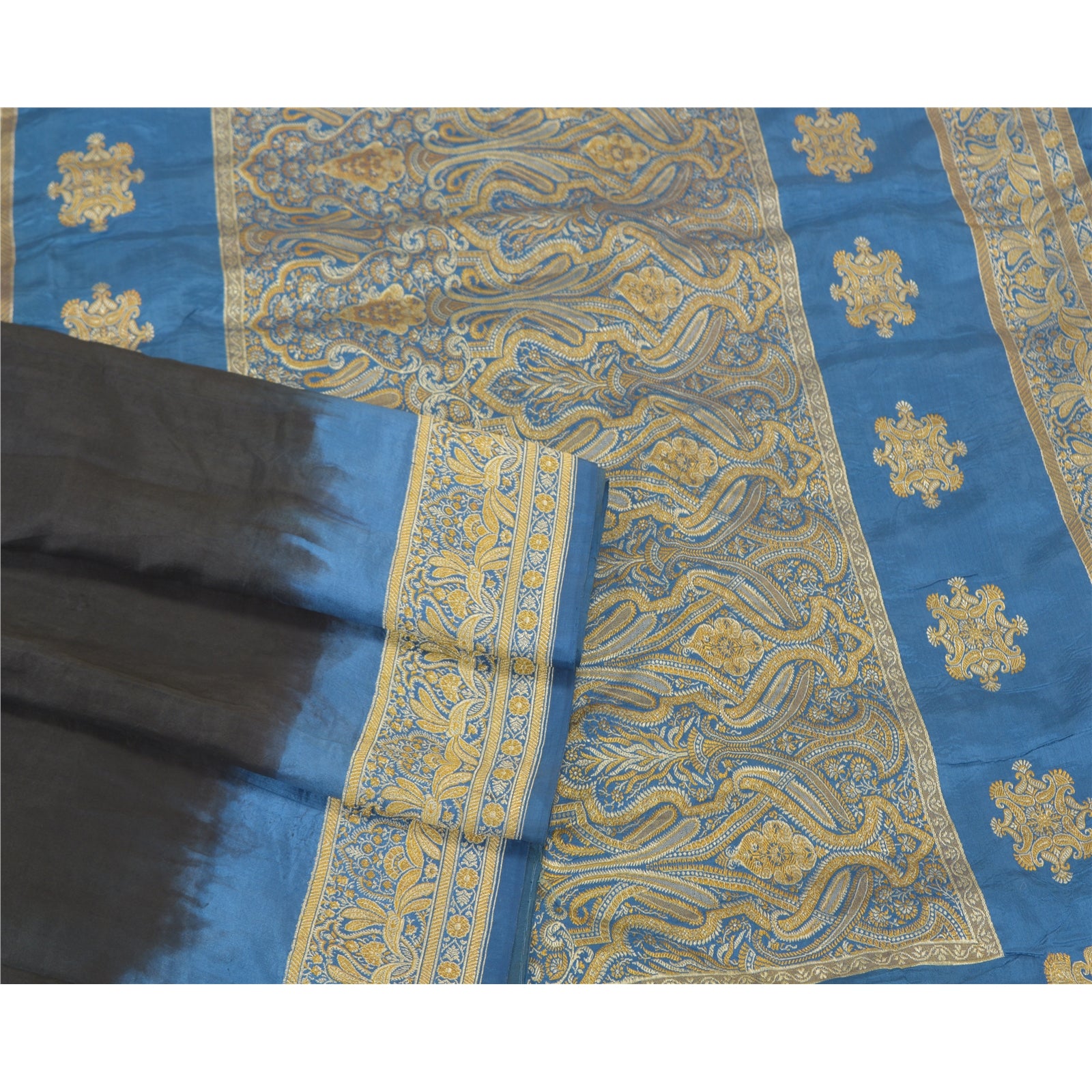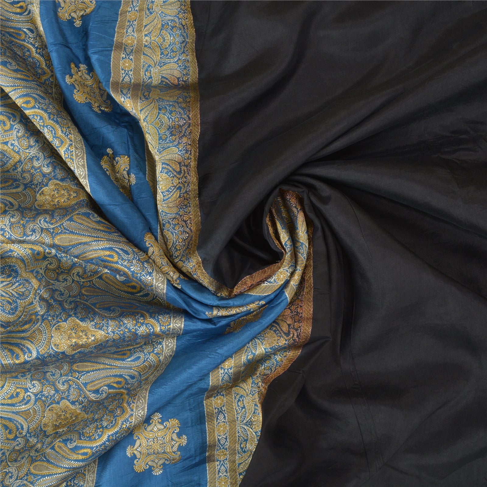 Sanskriti Vintage Blå Tunge Indiske Sarier 100% Ren Silke Vævet Sari Bæredygtigt Stof