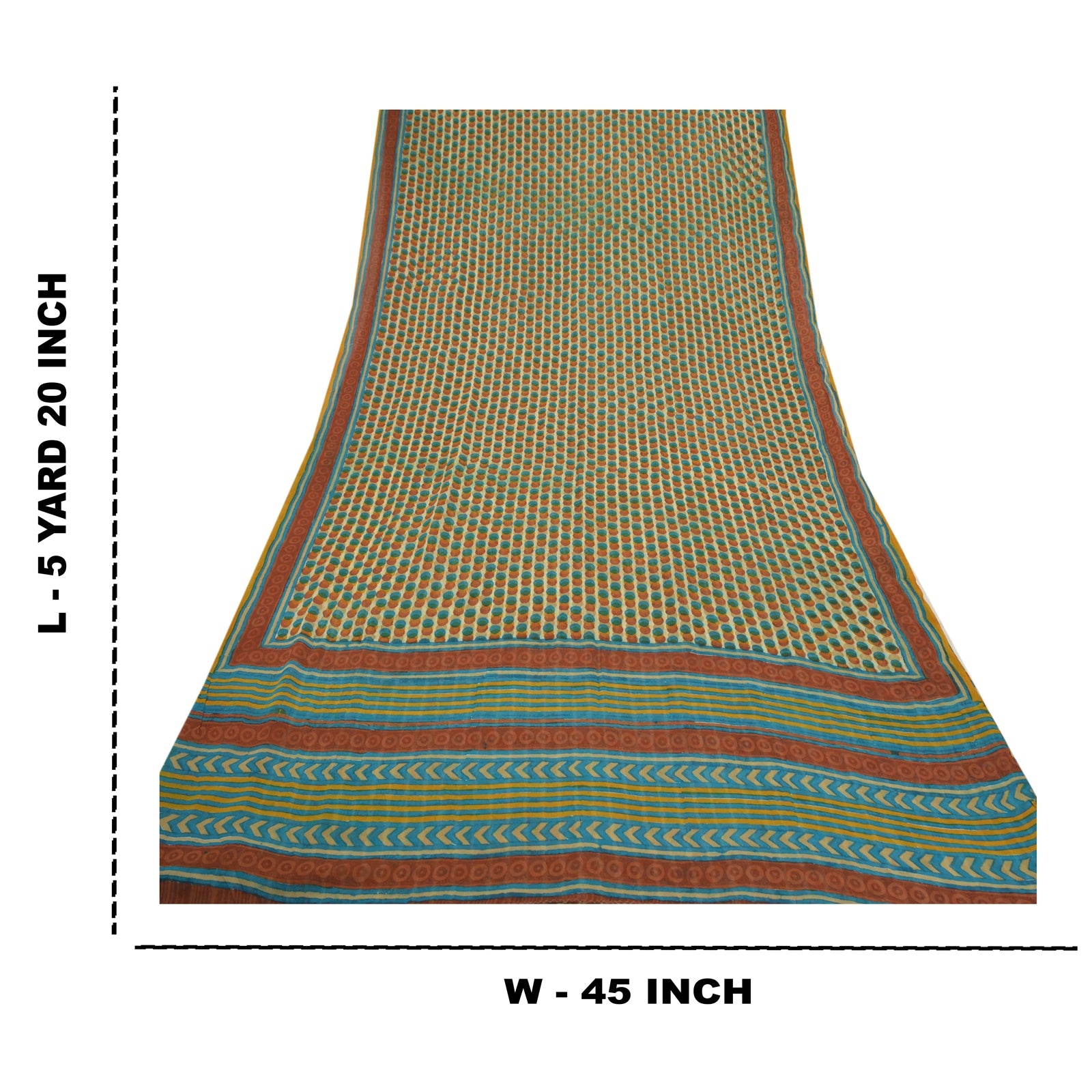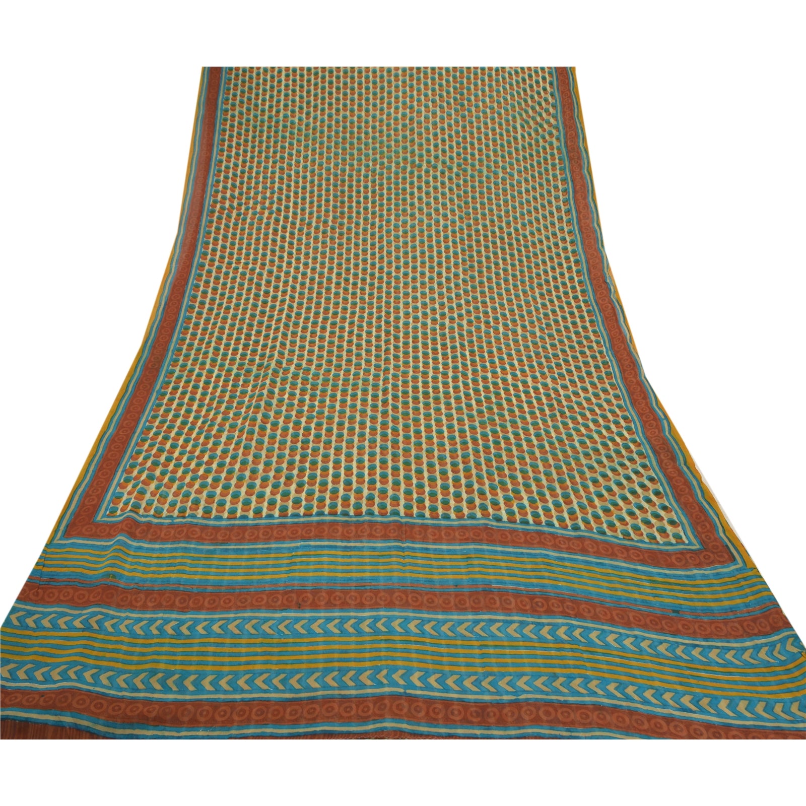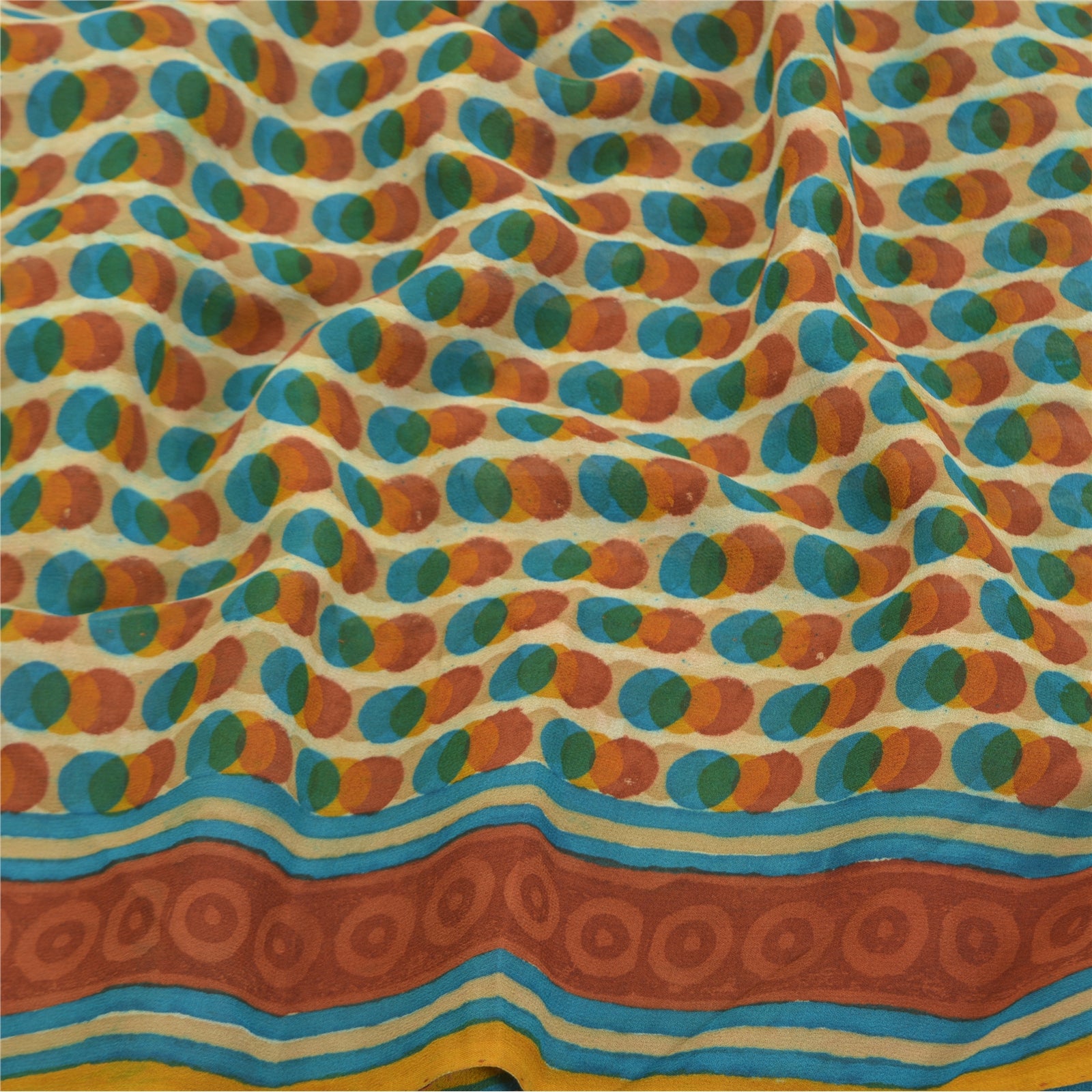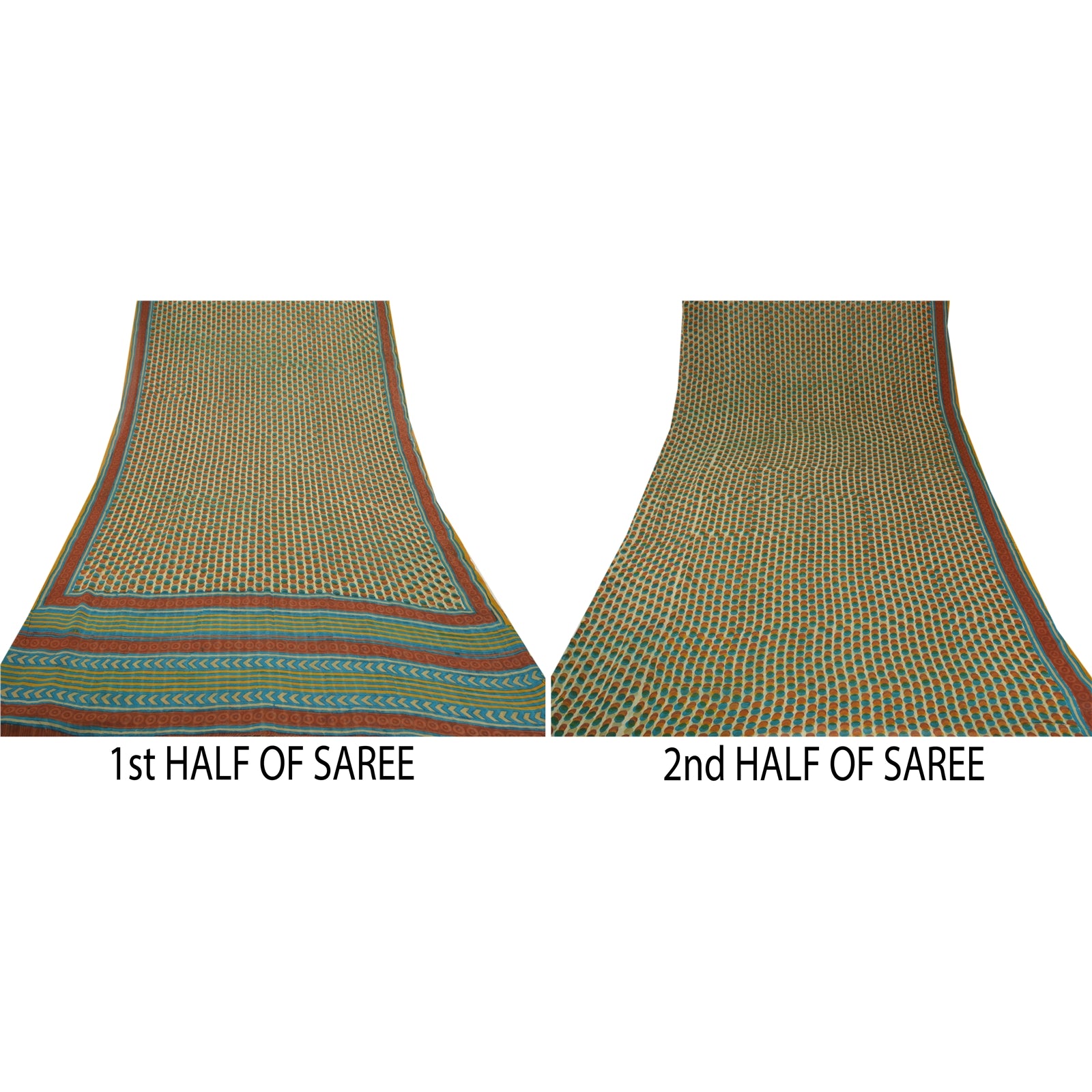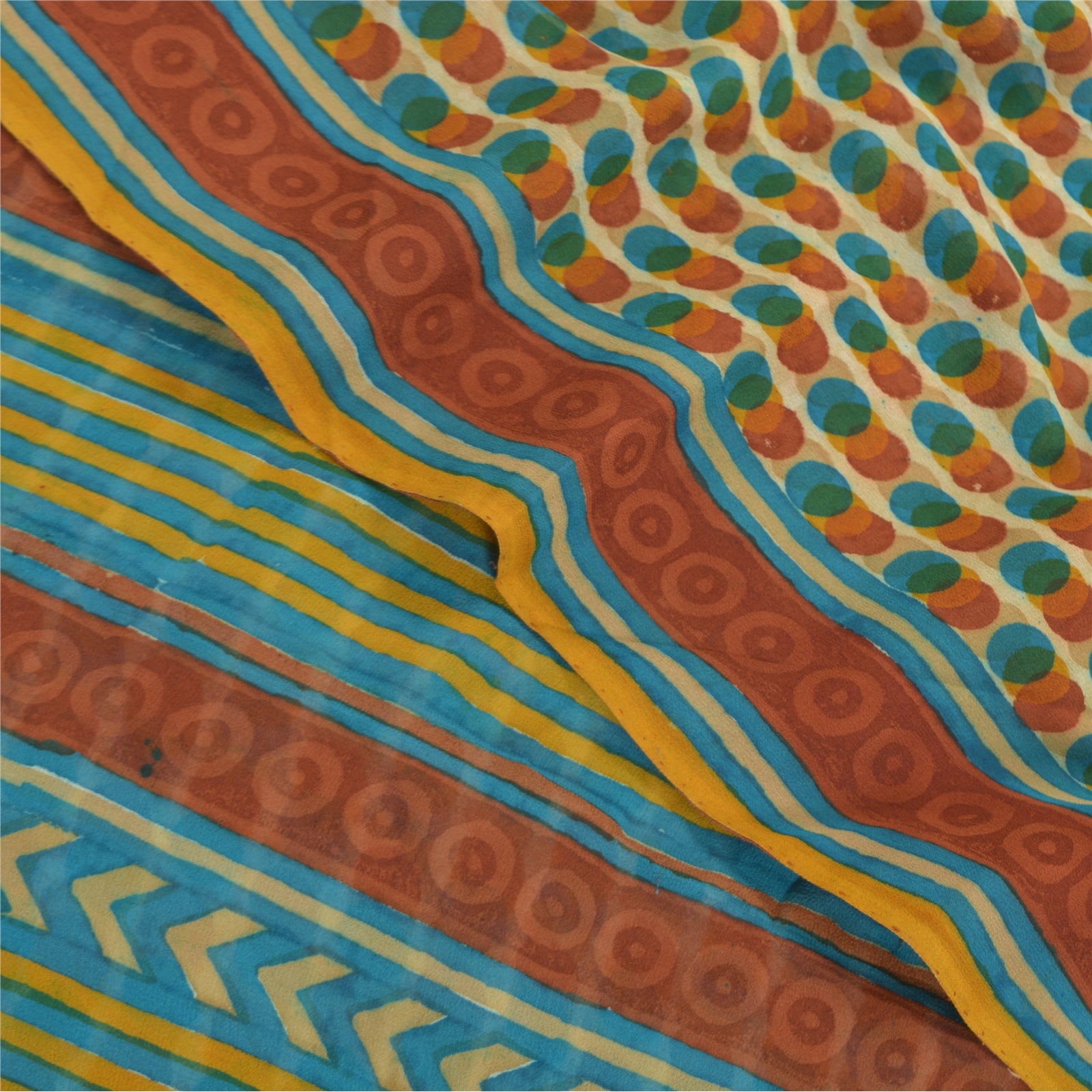 Sanskriti Vintage Blå Sarier Ren Georgette Silke Trykt Sari Blødt Håndværk Bæredygtigt Stoff