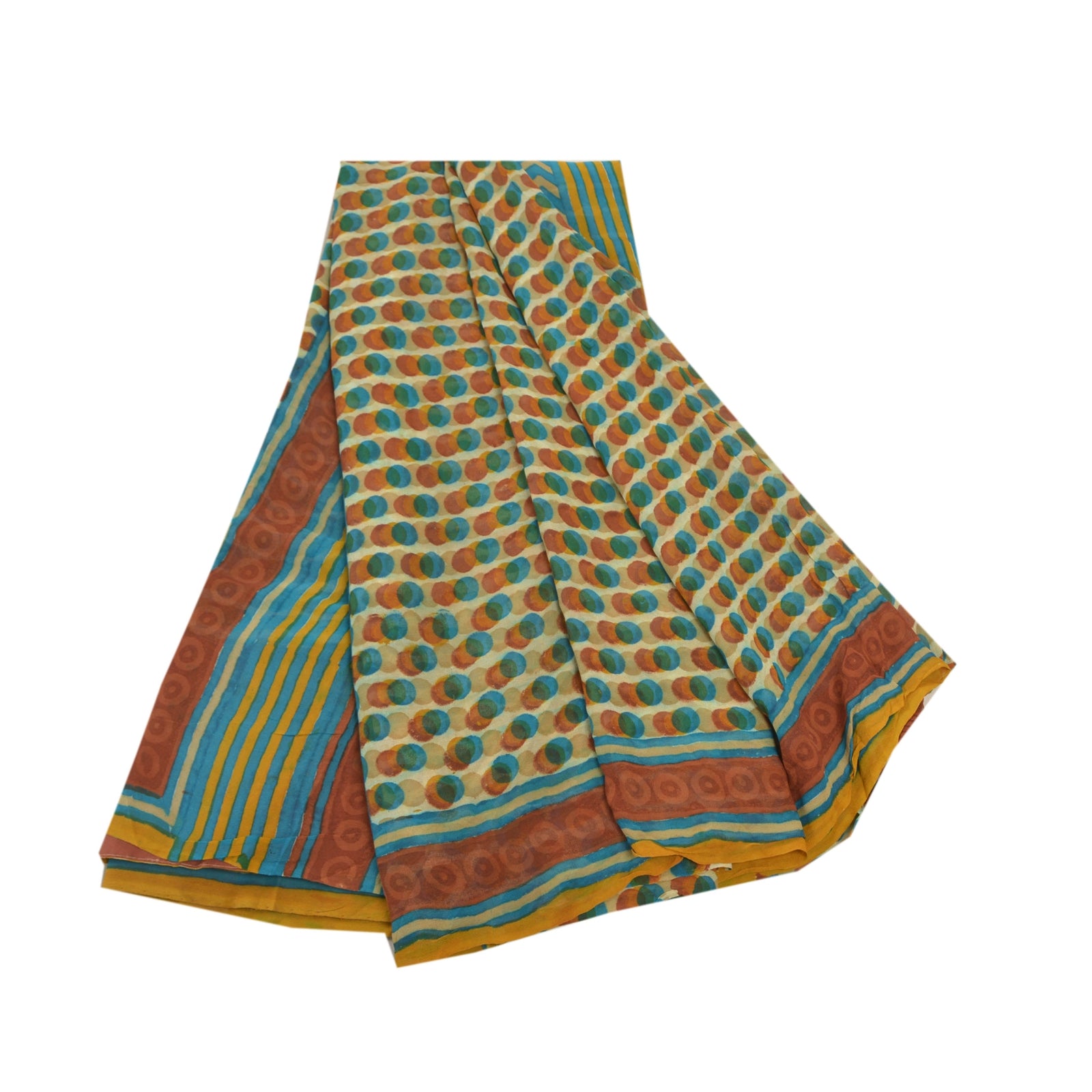• Yndig blå og brunfarvet trykt sari i ren georgette-silke. • Pallu & Border har trykt geometrisk design. • Cirkeldesign i sariens midterste del. Hvad er der specielt ved denne sari? Strålende geometrisk design med trykt arbejde på blødt bæredygtigt stof fremhæver virkelig sariens skønhed. Denne unikke vintage sari kan bruges til forskellige kreative idéer, selvom du ikke ønsker at bruge den som sari. Design en kjole, brug den som vinduesdekoration, polstring, saronger, tæppe, kjolesyning og bordlinned og meget mere. Lad dine kreative safter flyde, og brug dette dekorerede bæredygtige stof på flere måder.