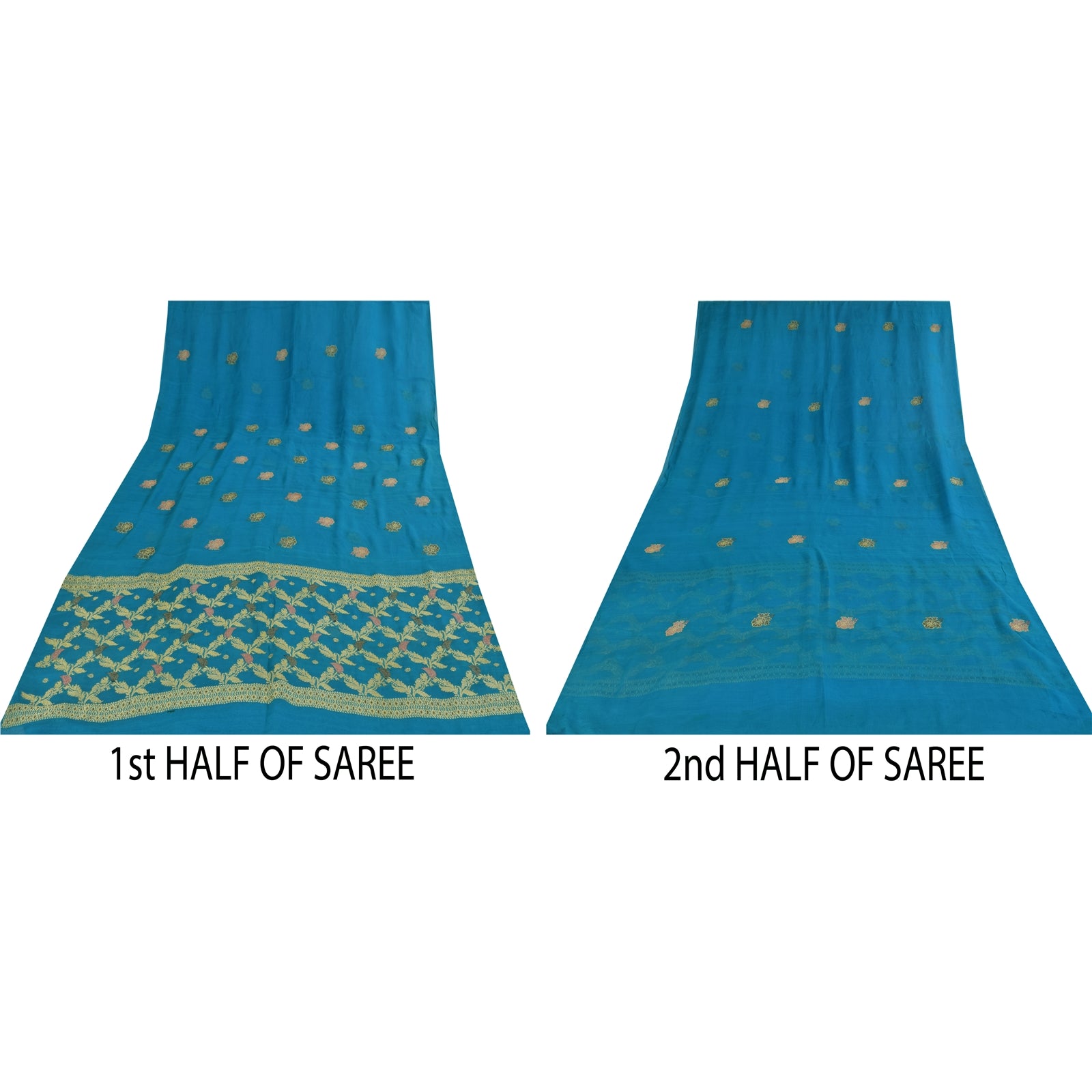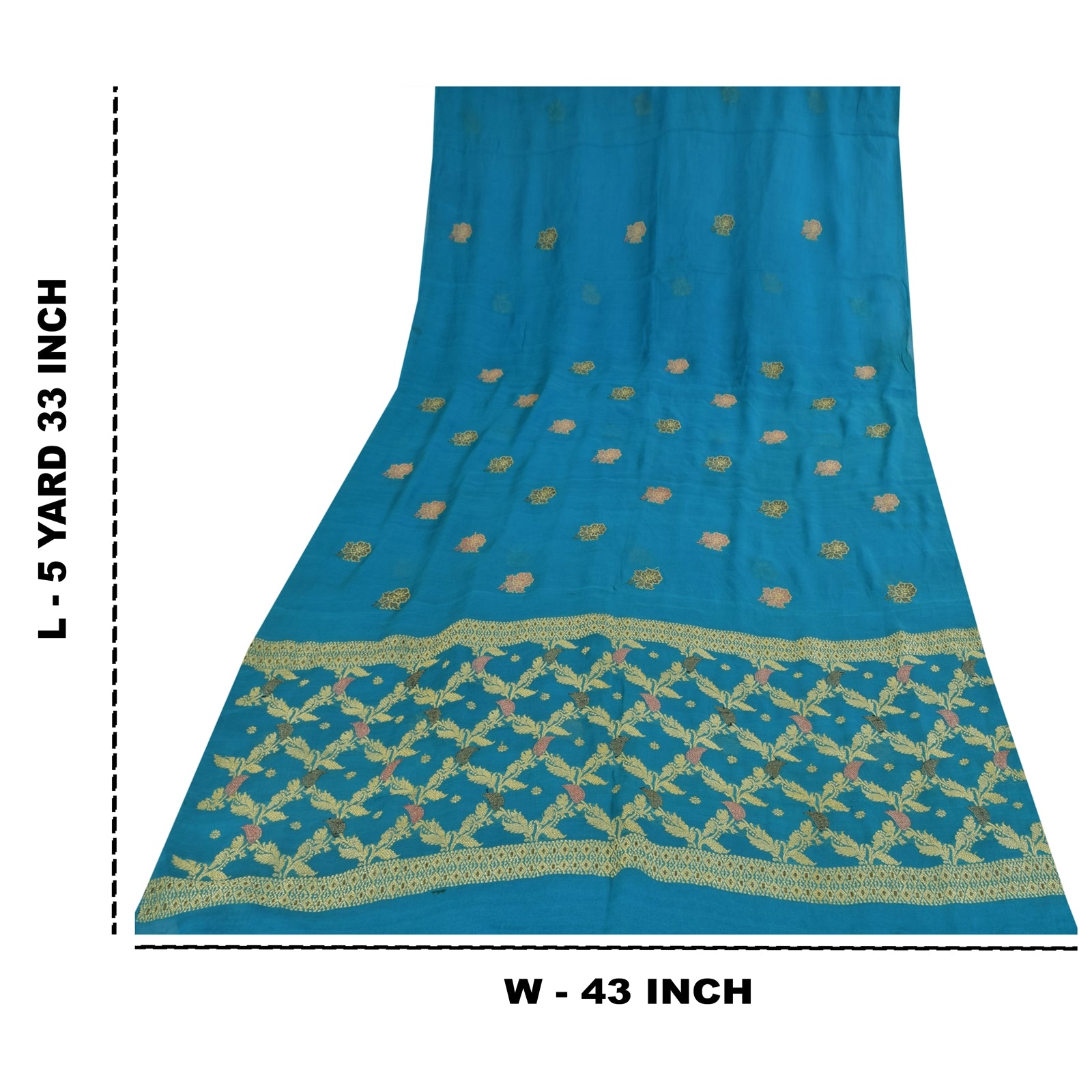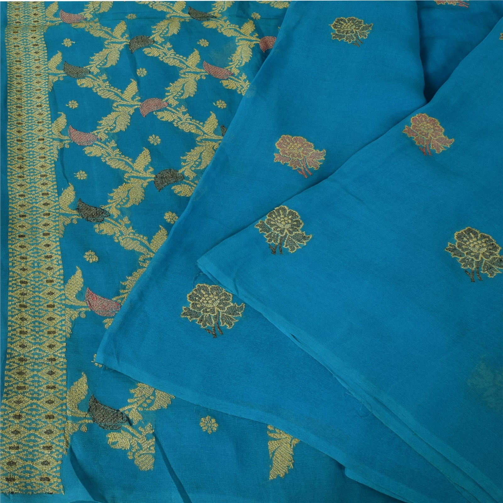 Sanskriti Vintage Blå Sarier Ren Georgette Vævet Premium Sari 5yd Håndværk Bæredygtigt Stoff