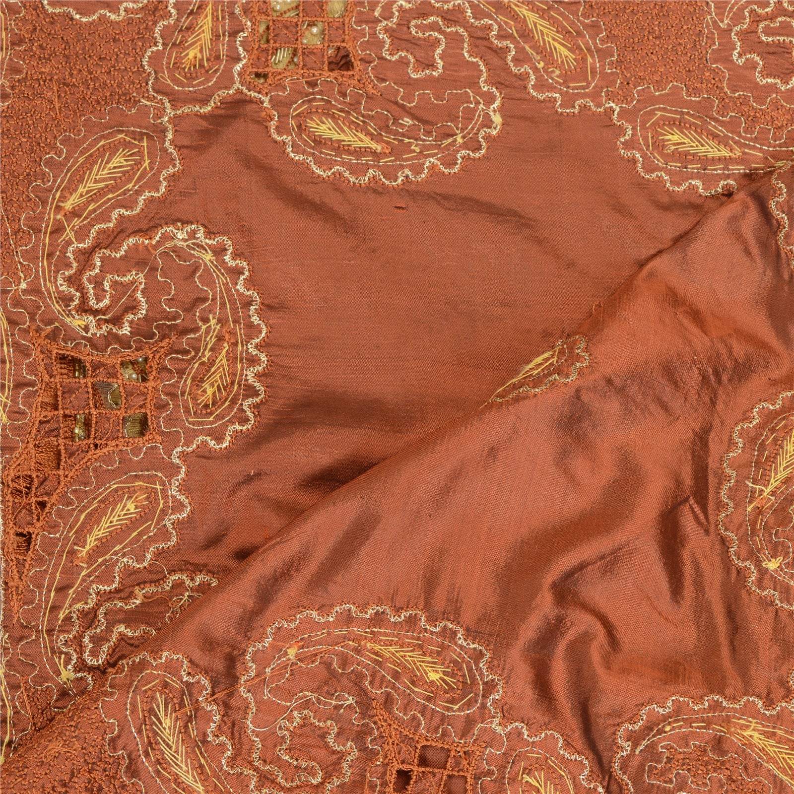 Sanskriti Vintage Brun Dupatta 100% Ren Silke Stola Håndperlet Zari Wrap Slør