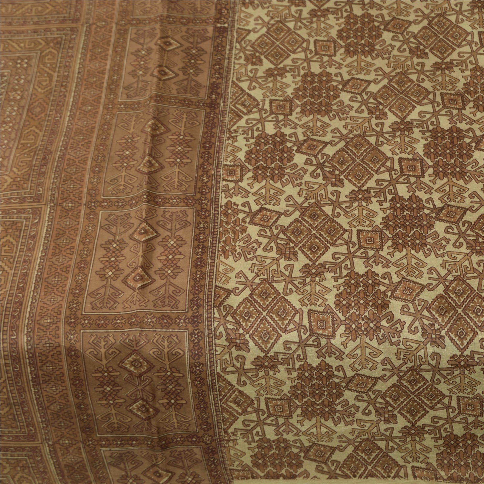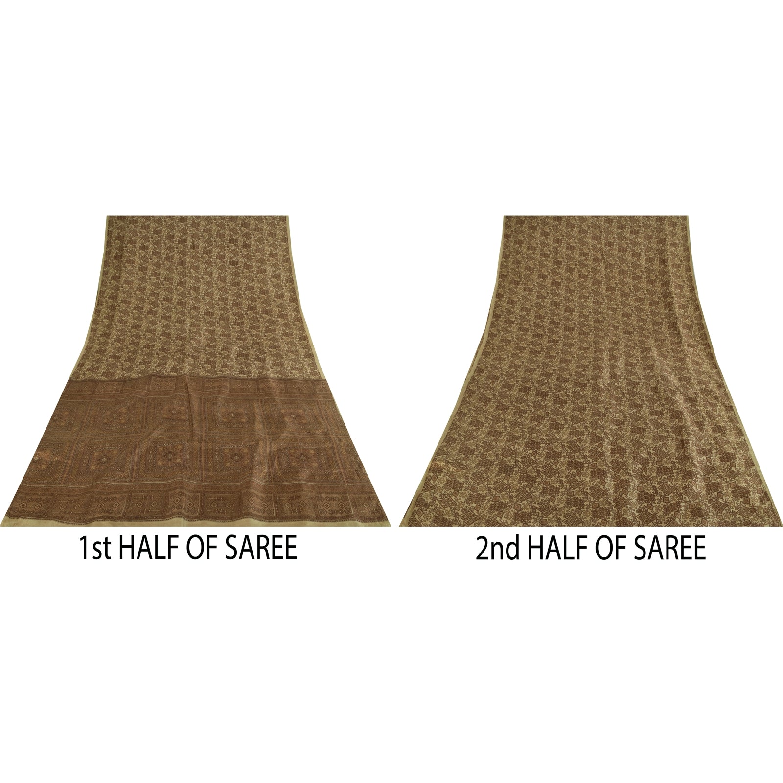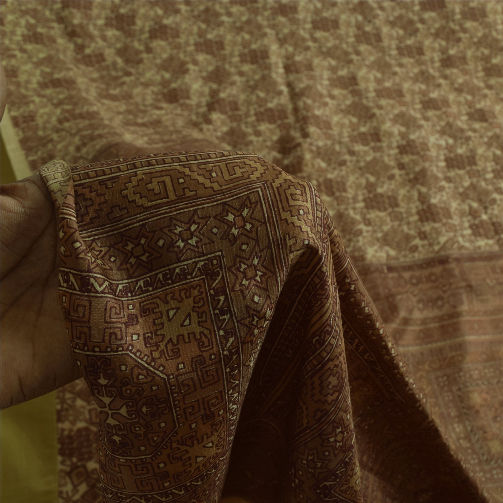 Sanskriti Vintage Brown Indian Sarees Pure Silk Printed Sari Soft Craft Fabric