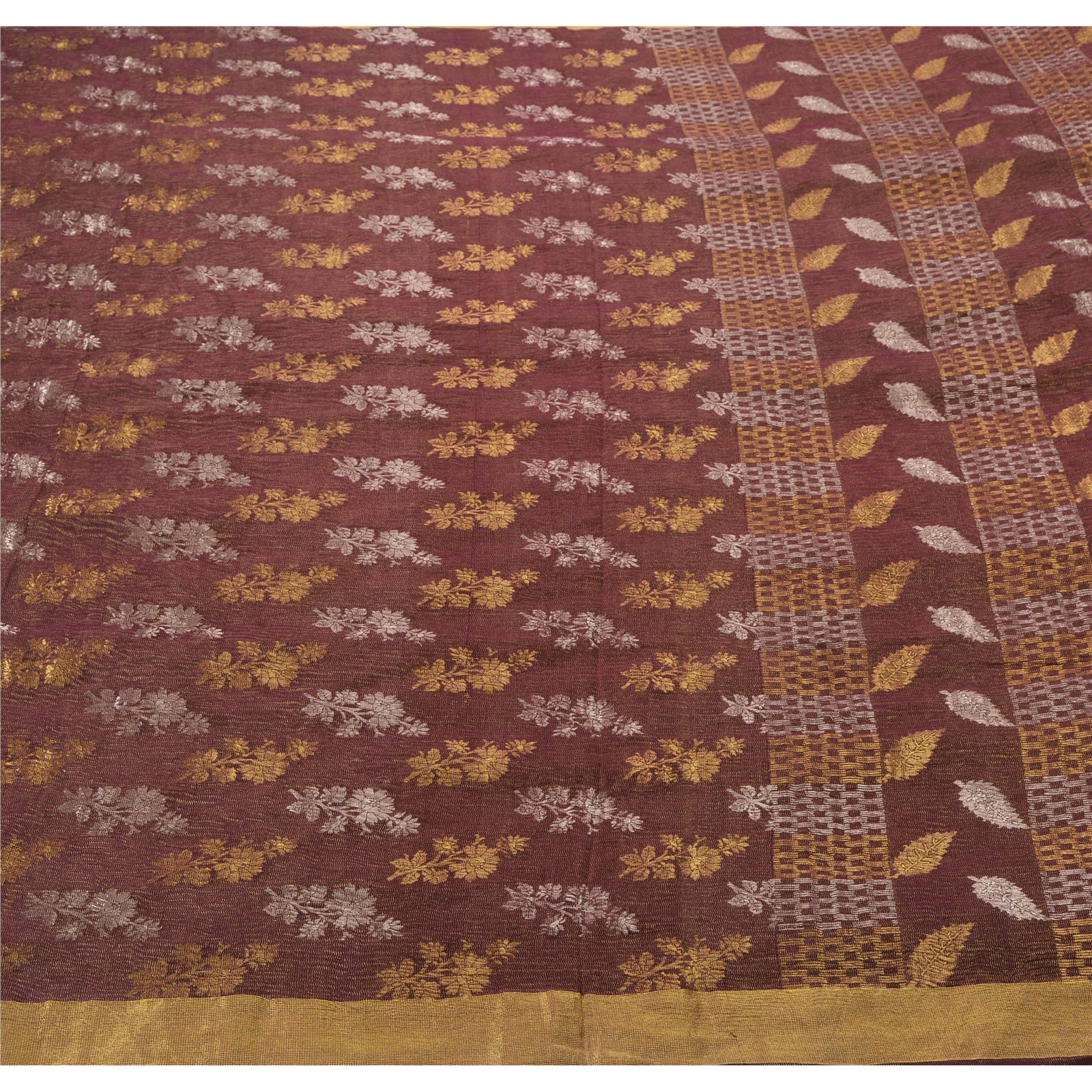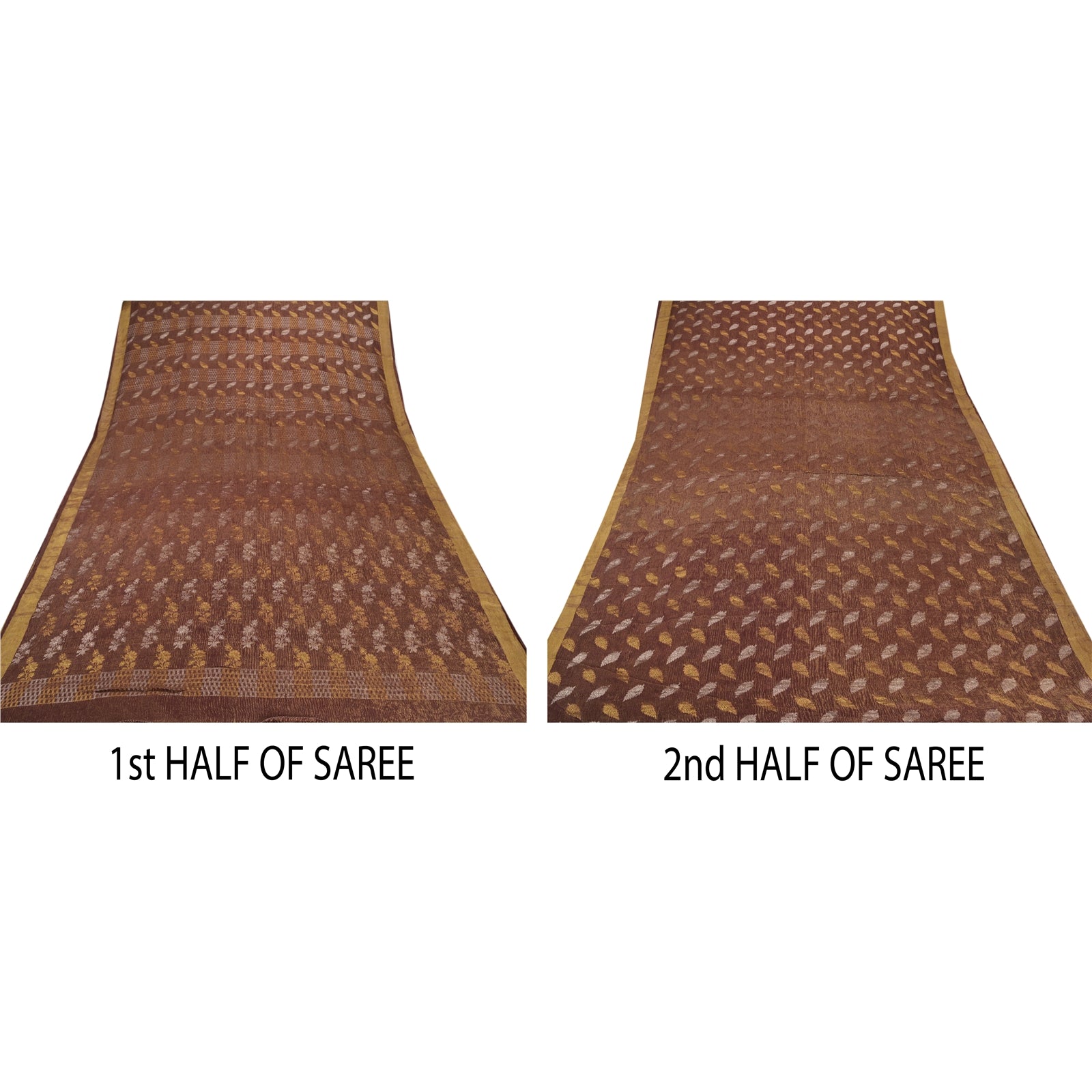 Sanskriti Vintage Brown Indian Sari 100% Pure Silk Woven Sarees 6 Yard Fabric
