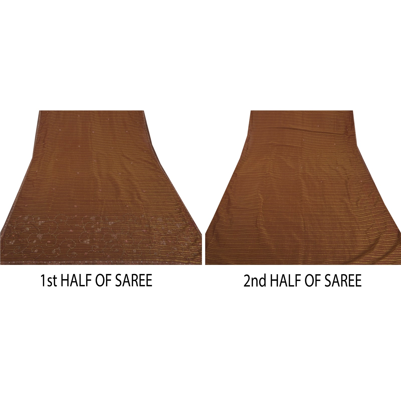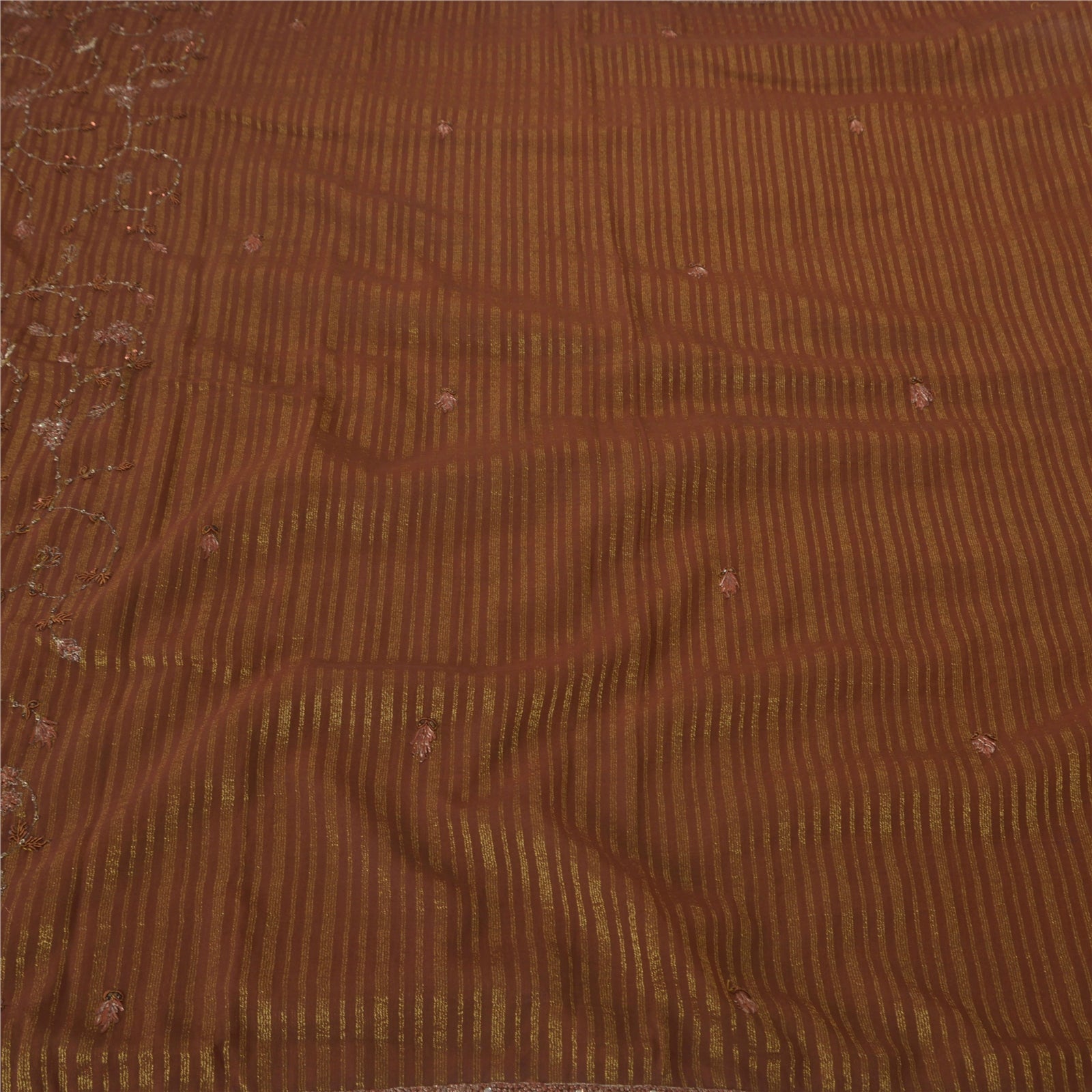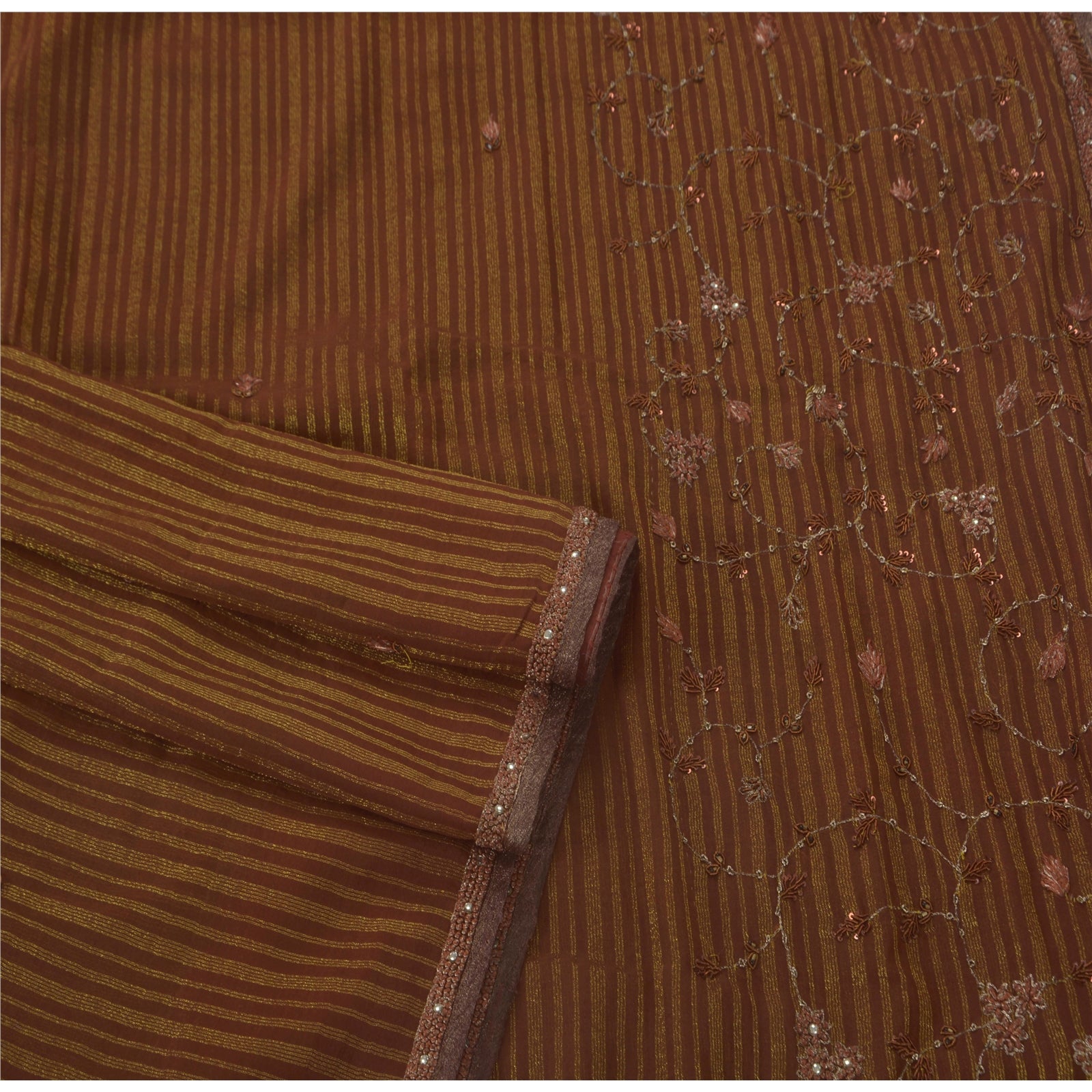 Sanskriti Vintage Brown Sarees Blend Georgette Hand Beaded Craft Fabric Sari
