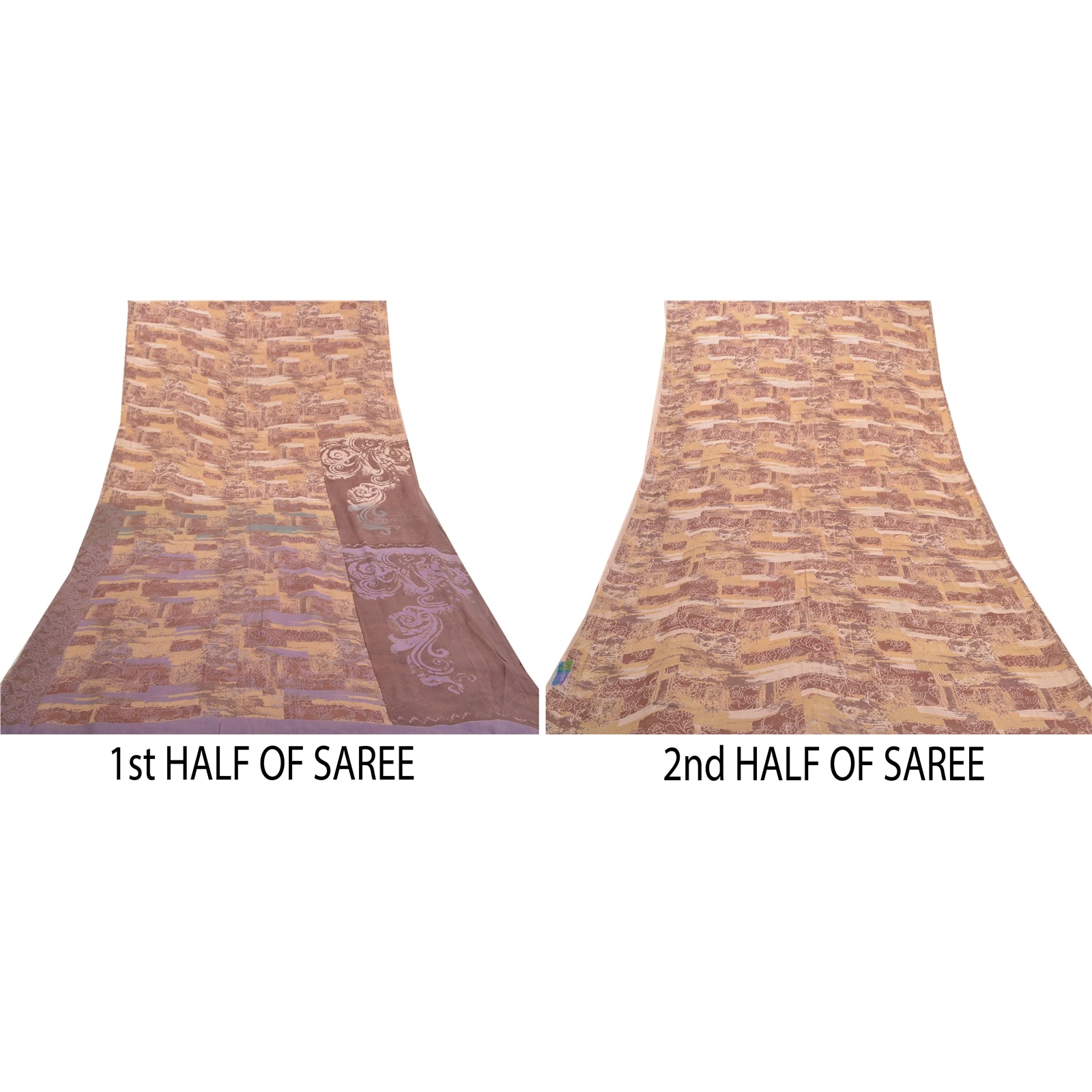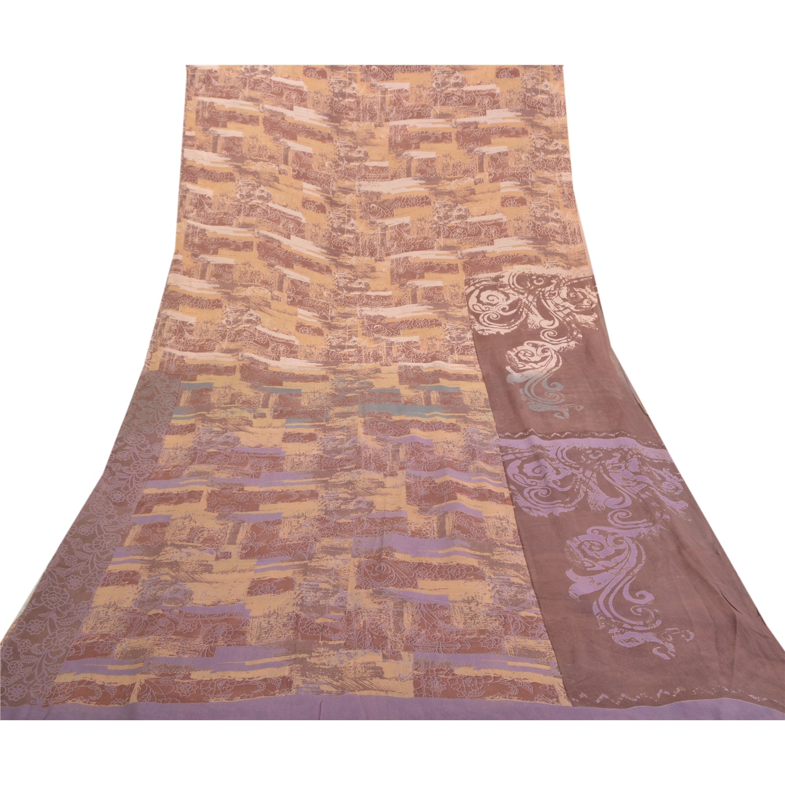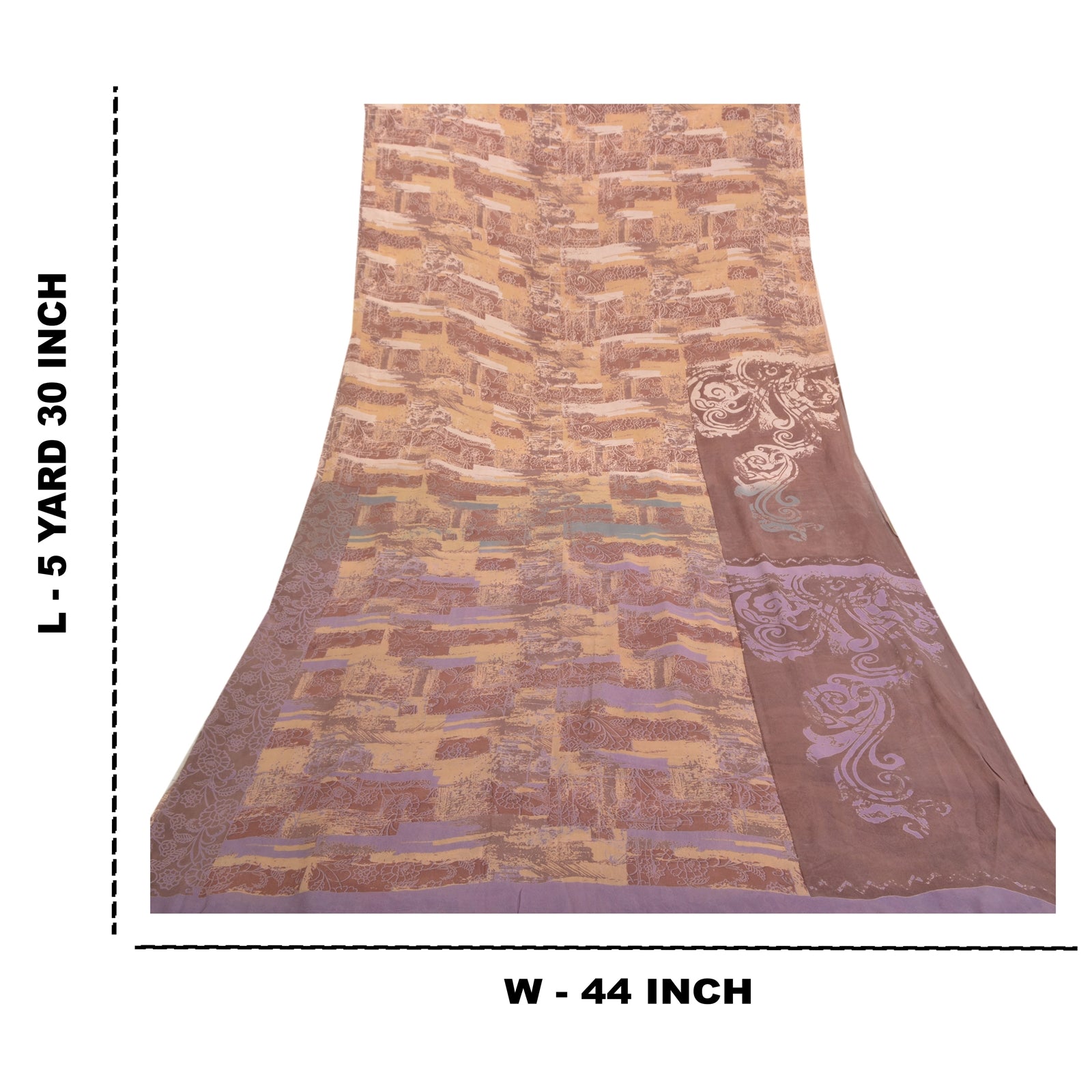 Sanskriti Vintage Brune Sarier Ren Georgette Silke Trykt Sari 5yd Håndværk Bæredygtigt Stoff