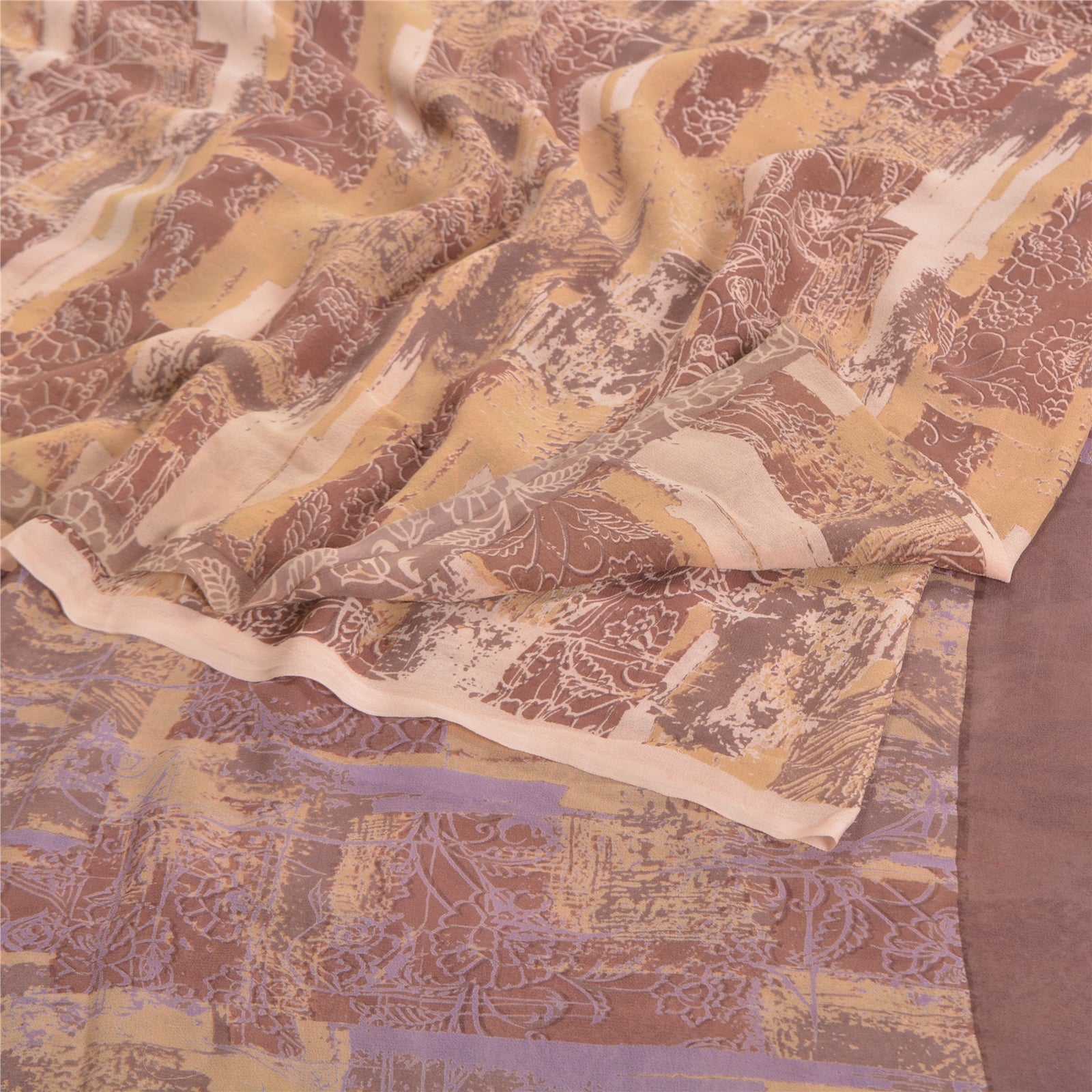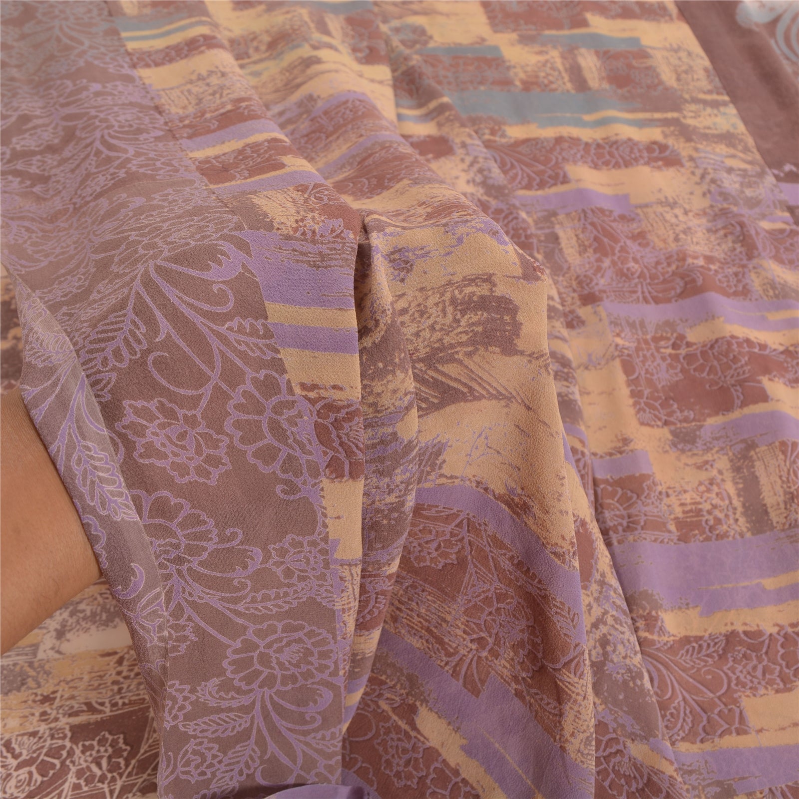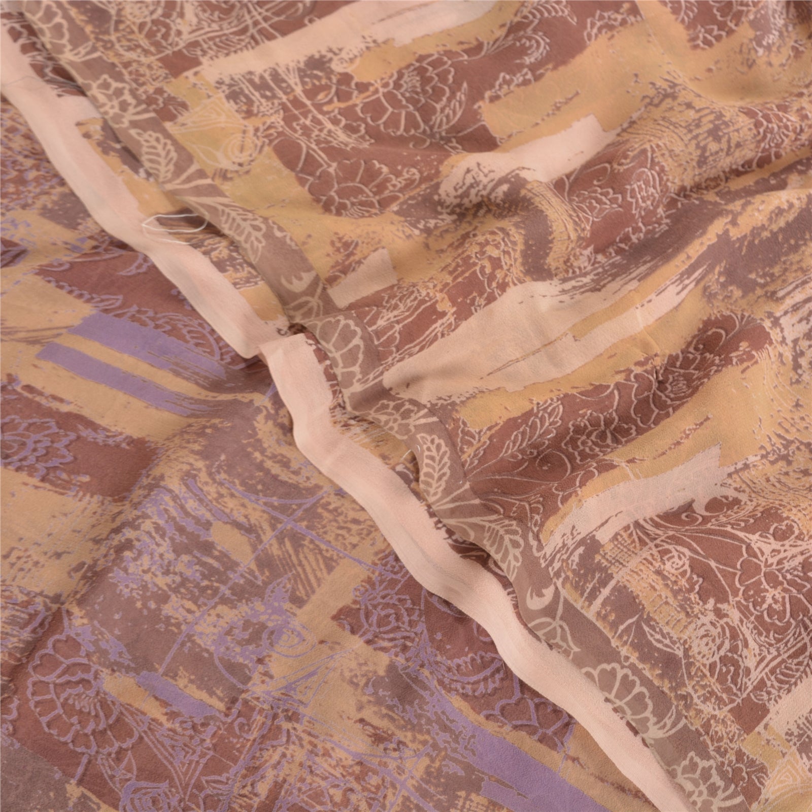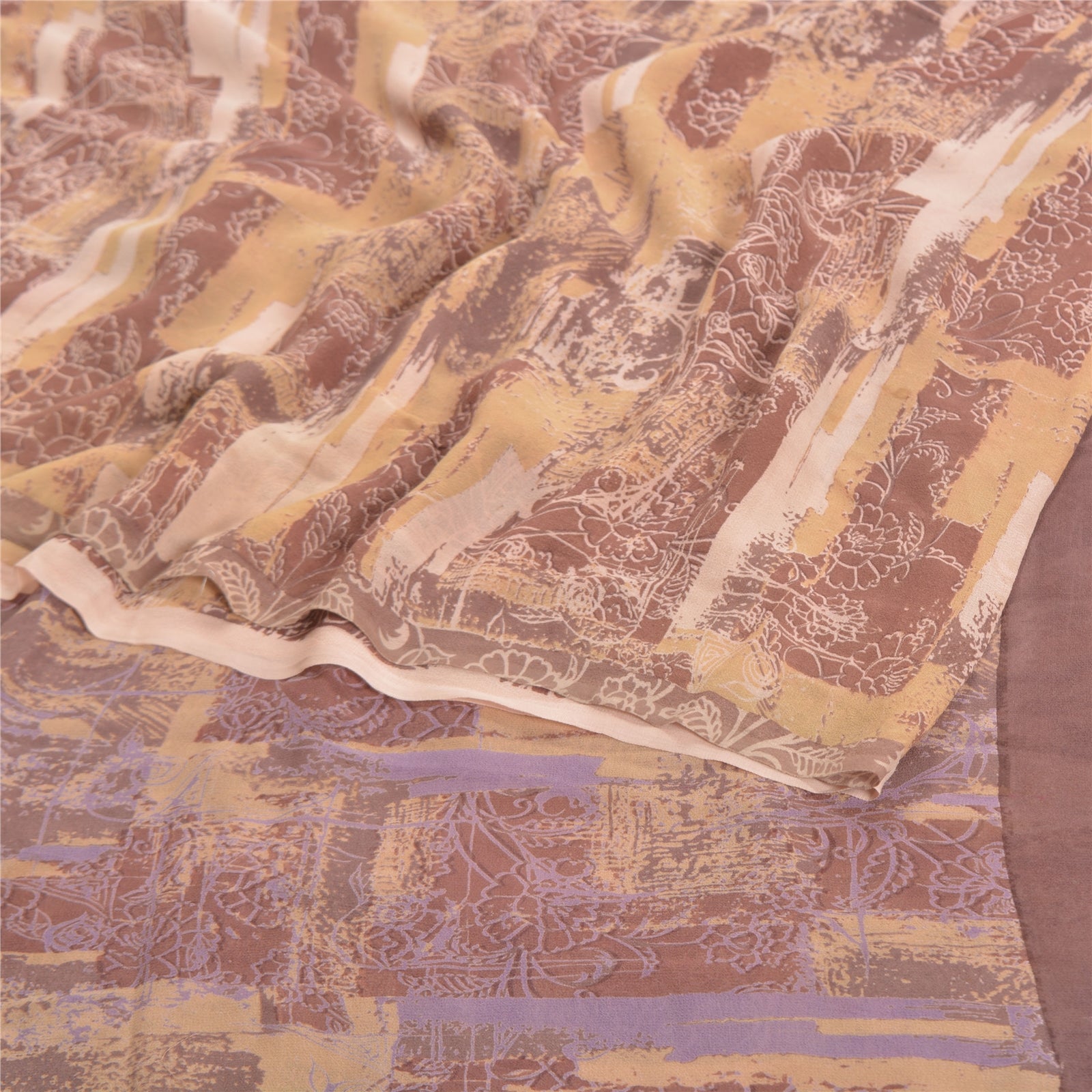 Sanskriti Vintage Brune Sarier Ren Georgette Silke Trykt Sari 5yd Håndværk Bæredygtigt Stoff