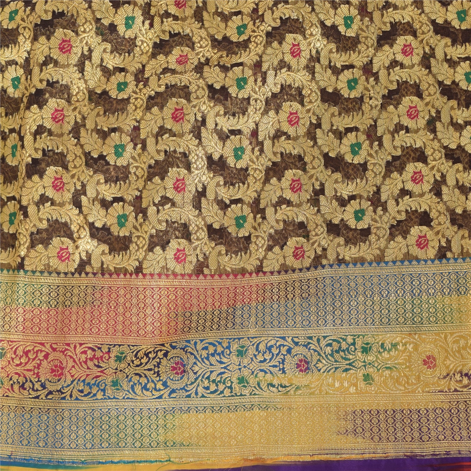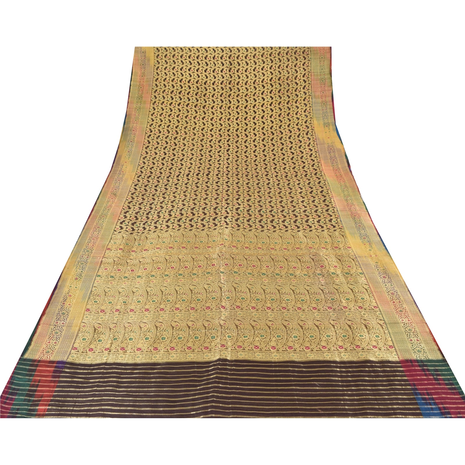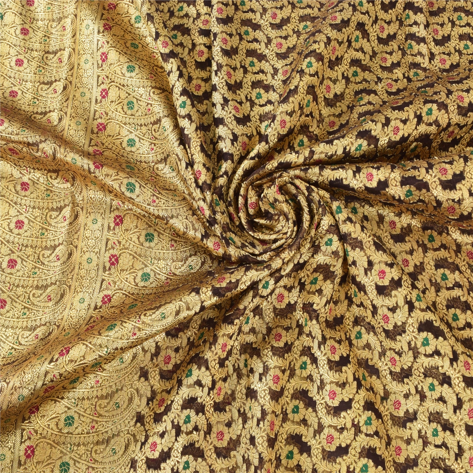 Sanskriti Vintage Brown Sarees Pure Silk Brocade/Banarasi Woven Sari 5yd Fabric