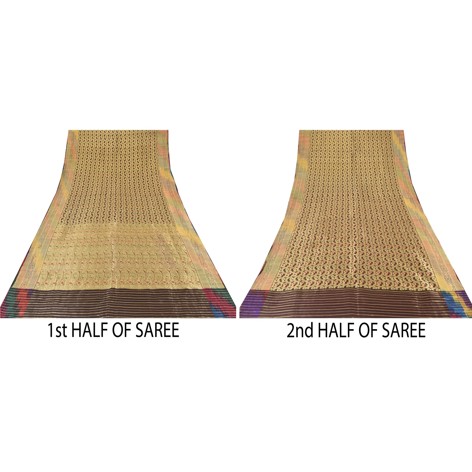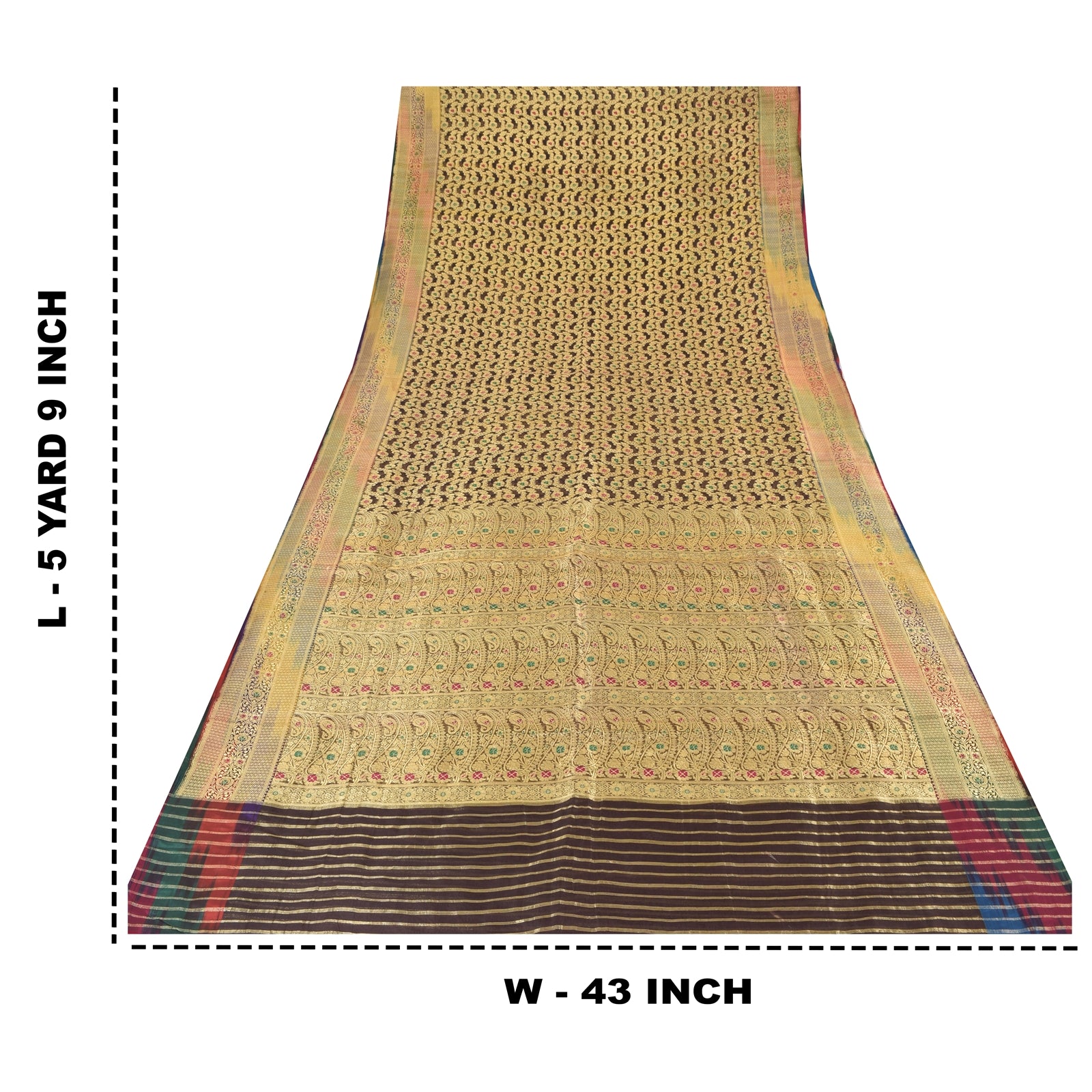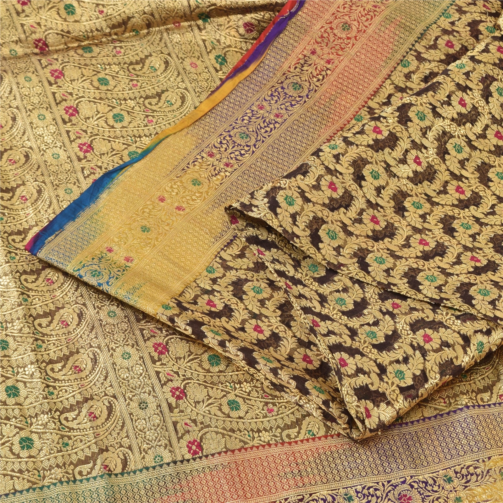Sanskriti Vintage Brown Sarees Pure Silk Brocade/Banarasi Woven Sari 5yd Fabric