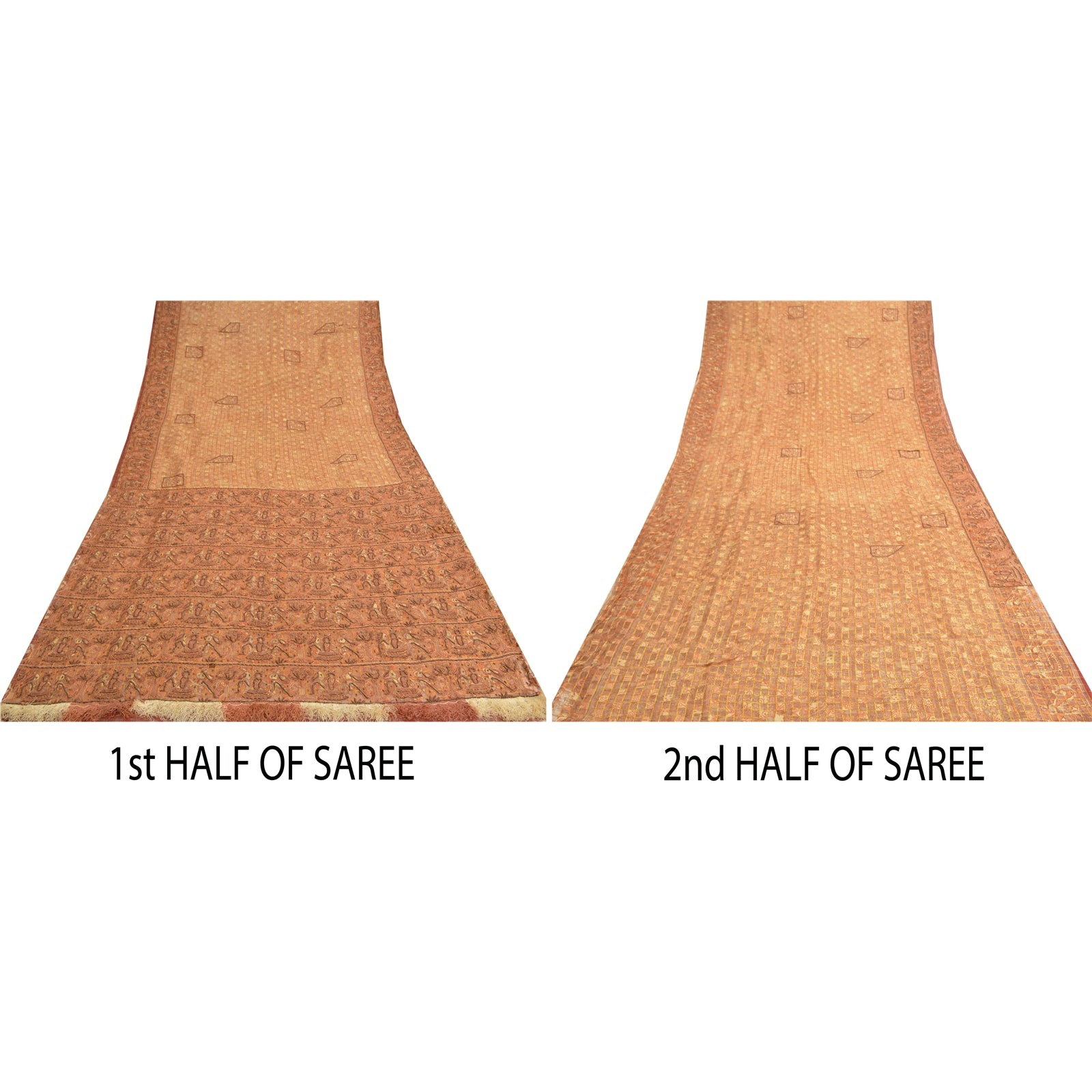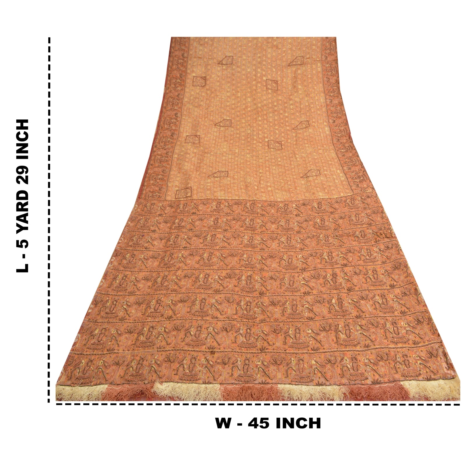 THE ITEM COLOR OR SHADE MAY BE DARKER OR LIGHTER THAN THE PICTURE. • Beautiful cream colored hand embroidered woven painted pure organza silk sari • Pallu & Border features floral, human figure design embellished with pure metallic copper zari/zardozi/dabka work, cream/brown thread work, golden beads and golden weaving woven work. • There are floral motifs with similar work in center part of sari. • Sari has cream/brown fringes on pallu. This unique vintage saree can be used for various crafting ideas even if you don't want to use it as a sari. Design a dress, use it as a throw, as window dressing, upholstery, sarongs, table linen and much more. Let your creative juices flow and use this decorated fabric in multiple fashion. International buyers please note: Import duties, taxes, and charges are not included in the item price or postage cost. These charges are the buyer's responsibility. Please check with your country's customs office to determine what these additional costs will be prior to bidding or buying. Buyer will pay custom duty/tax. It is calculated and charged differently by every country. As a seller I do not have any control over it. VAT or sales tax is calculated by the platform at the time of checkout. Customs charge is payable at the time of delivery. PS-21694