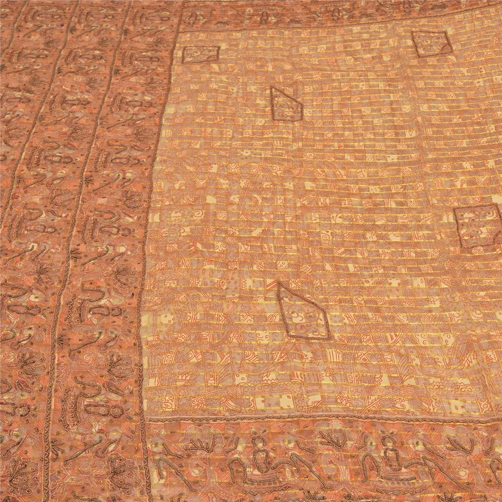 Sanskriti Vintage Cream Sarees Pure Organza Silk Hand Beaded Craft Fabric Sari