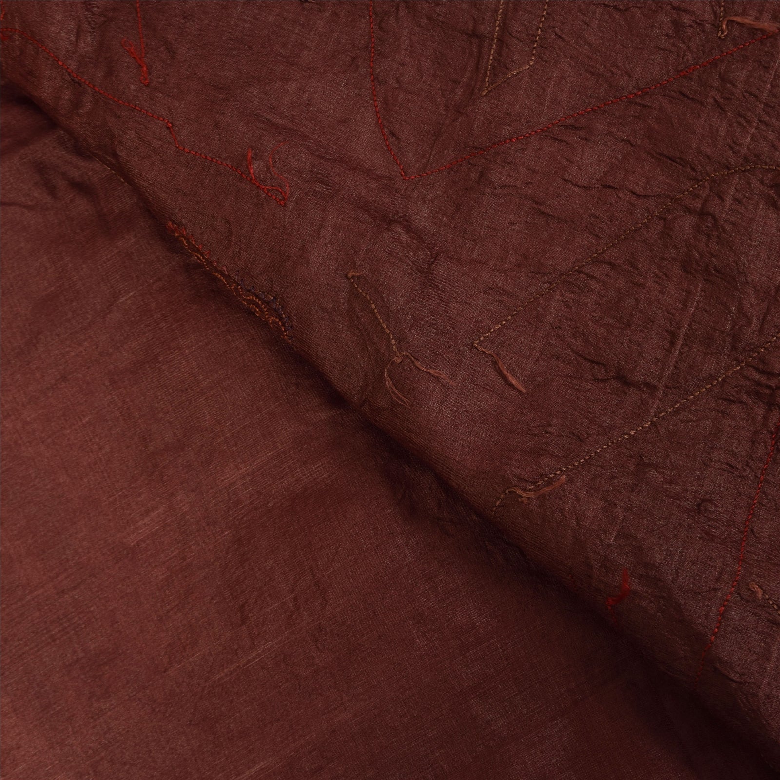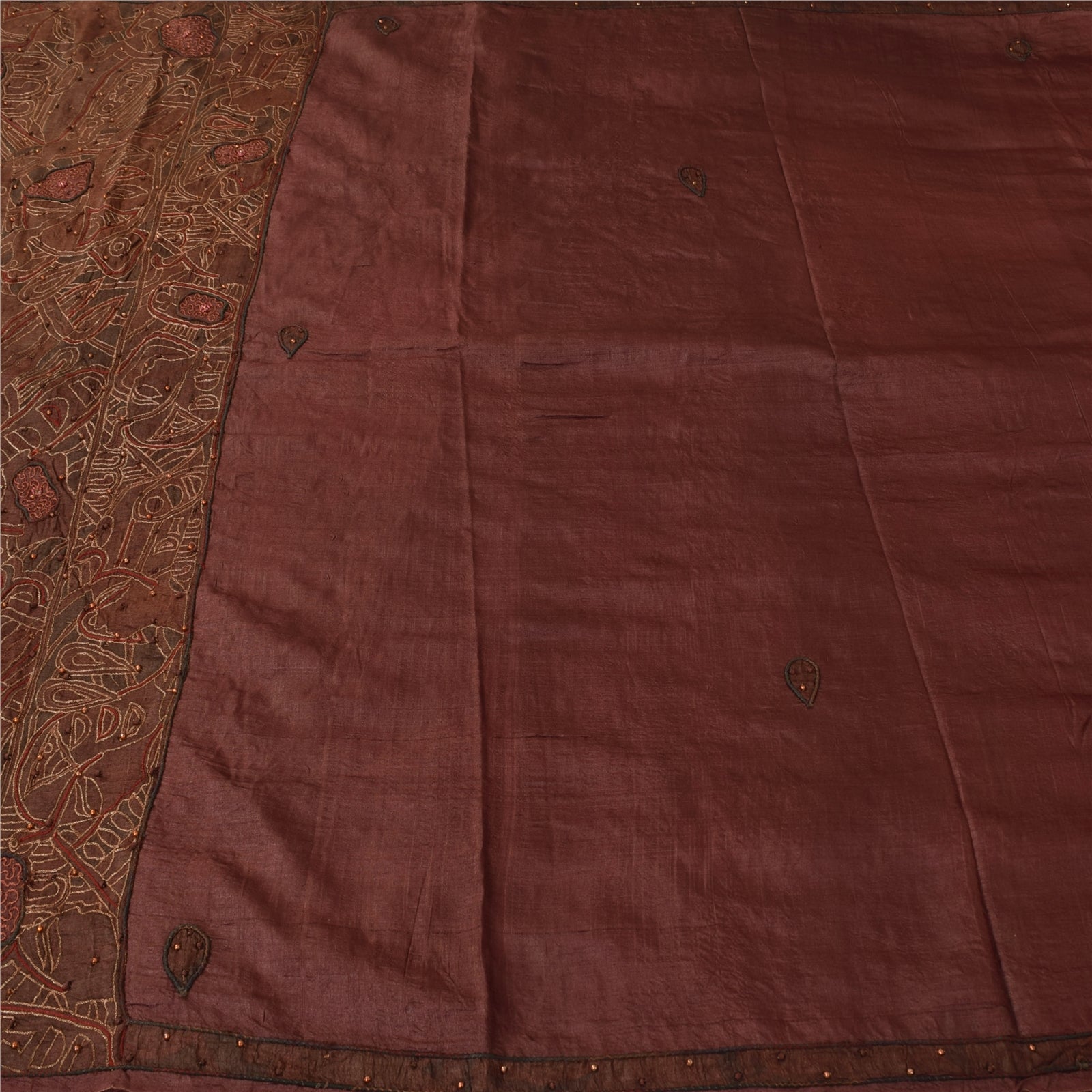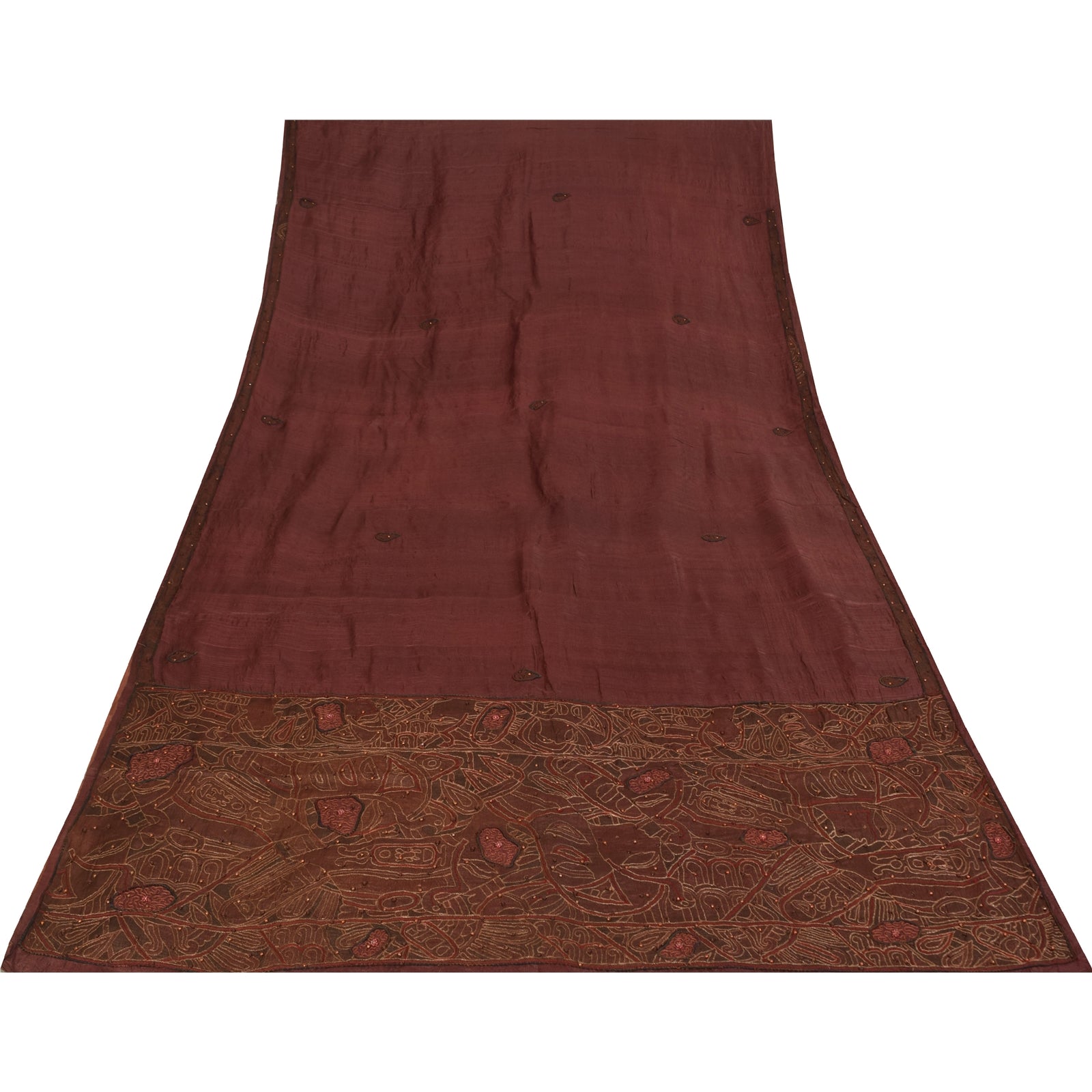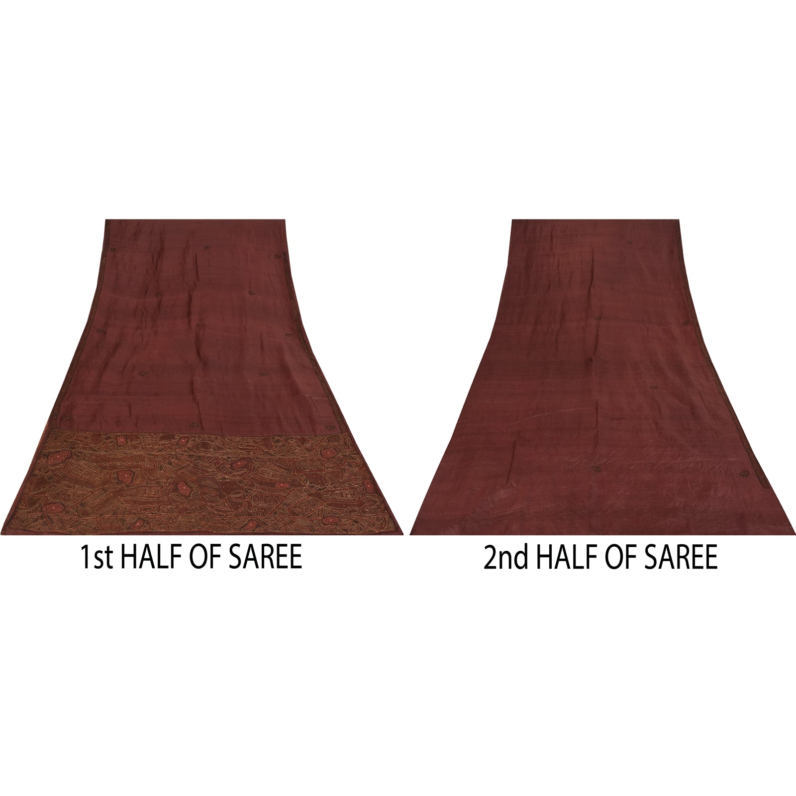 Sanskriti Vintage Dark Red Sarees Pure Silk Hand Beaded Ethnic Fabric Craft Sari
