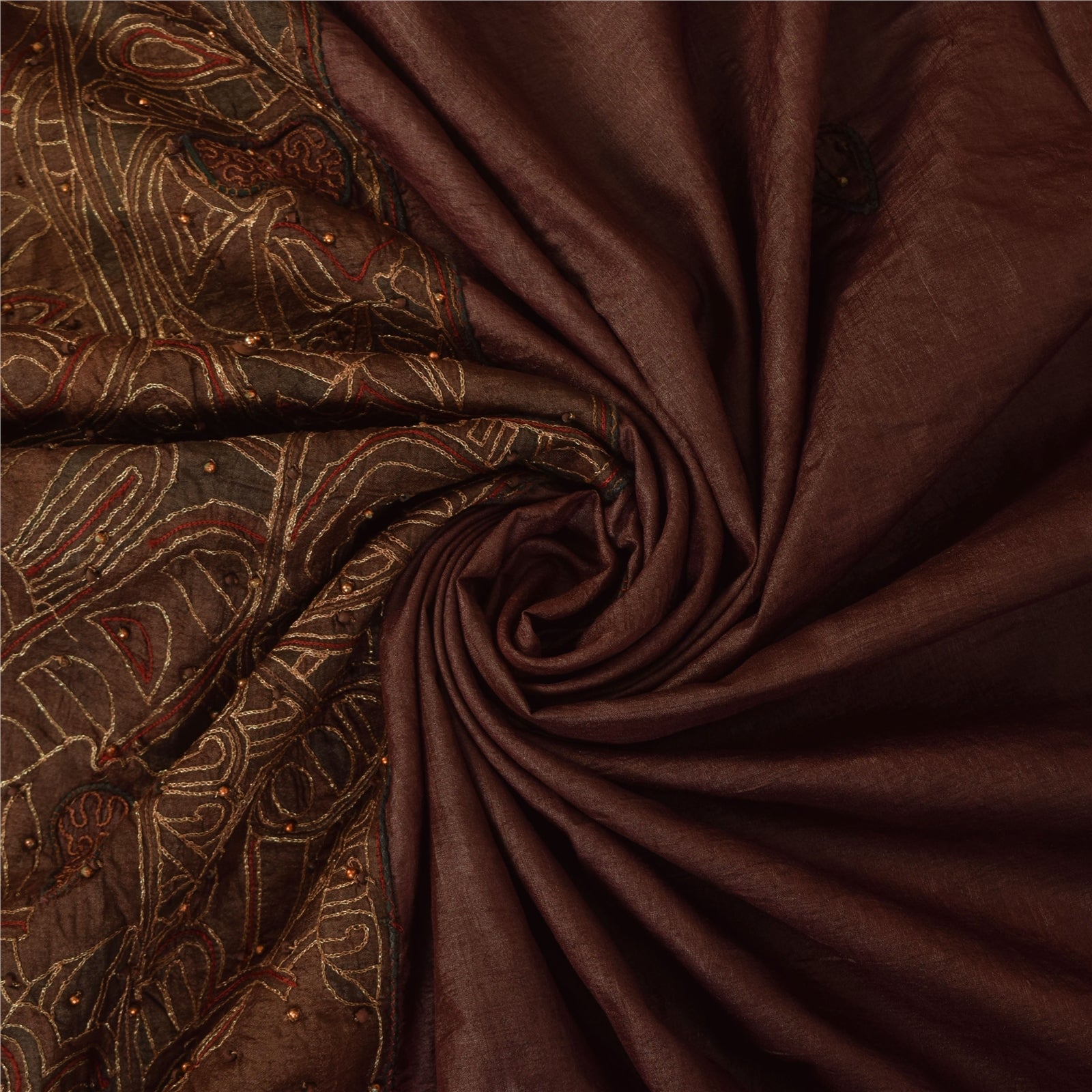 THE ITEM COLOR OR SHADE MAY BE DARKER OR LIGHTER THAN THE PICTURE.' • An Awesome dark red colored hand embroidered sari which is crafted with 100% pure silk fabric. • Pallu & Border features floral design embellished with red, brown thread work, black dori work, golden zari work, brown wooden beads work & golden beads work. • There are floral motifs with similar work in center part of sari. Alluring gold zari work with floral design on dark red color base fabric is really enhancing the beauty of the saree. This unique vintage saree can be used for various crafting ideas even if you don't want to use it as a sari. Design a dress, use it as a throw, as window dressing, upholstery, sarongs, table linen and much more. Let your creative juices flow and use this decorated fabric in multiple fashion. Shipping note: International buyers please note: Import duties, taxes, and charges are not included in the item price or postage cost. These charges are the buyer's responsibility. Please check with your country's customs office to determine what these additional costs will be prior to bidding or buying. Buyer will pay custom duty/tax. It is calculated and charged differently by every country. As a seller I do not have any control over it. VAT or sales tax is calculated by the platform at the time of checkout. Customs charge is payable at the time of delivery. SKU: PS-29276
