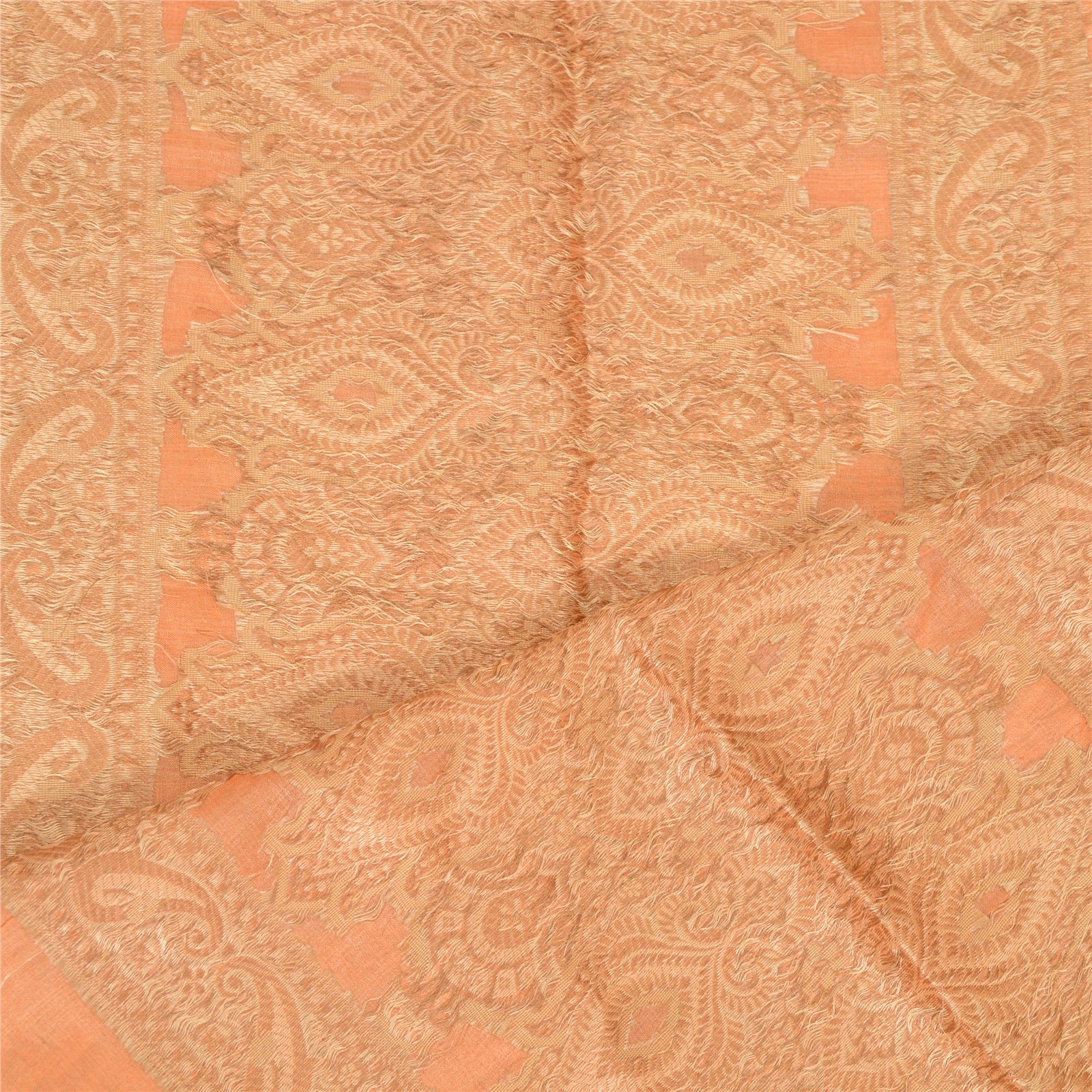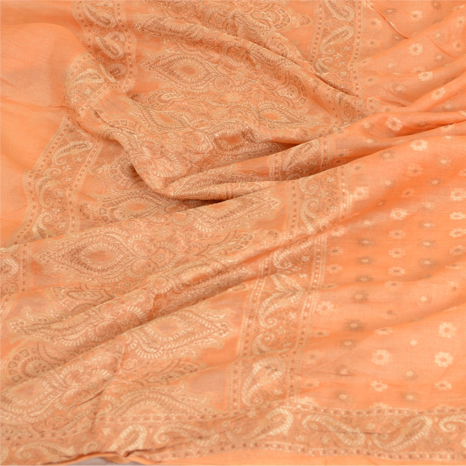Sanskriti Vintage Dupatta Lang Stola 100% Ren Silke Ferskenfarvet Håndvævet Tørklæder