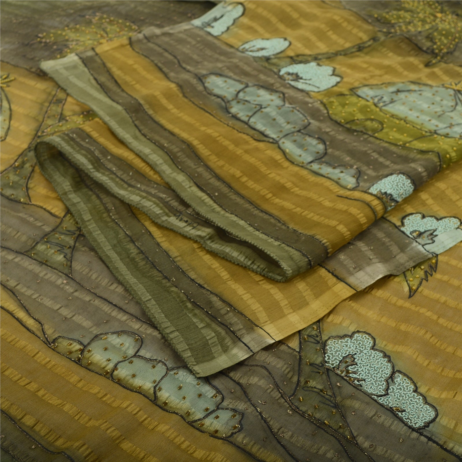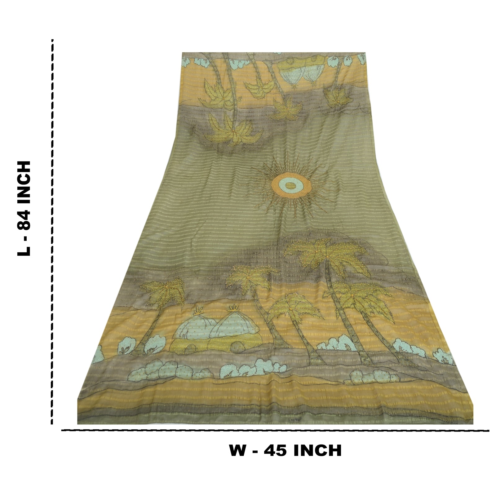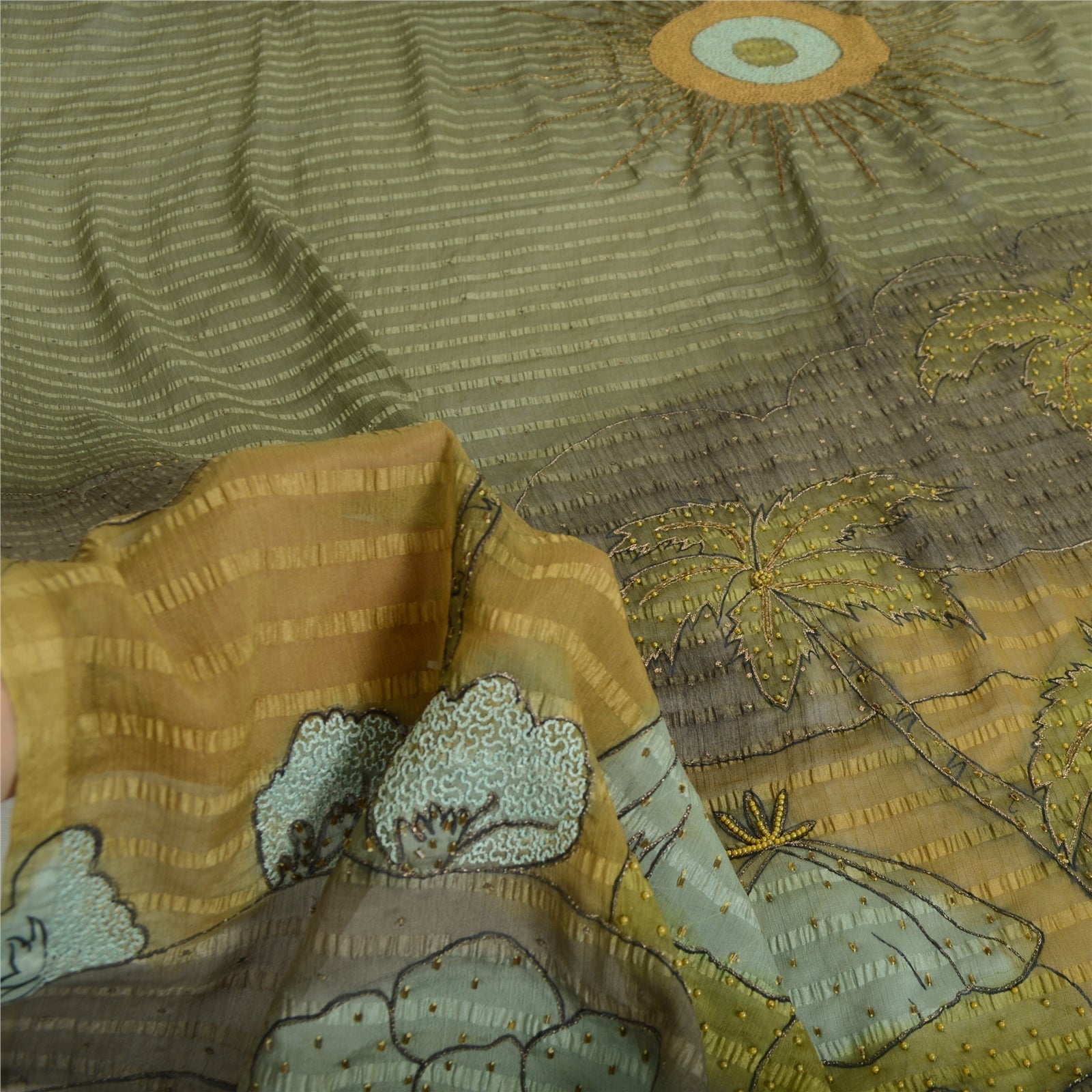 Sanskriti Vintage Dupatta Long Stole Art Silk Green Scarves Hand Beaded Scarves