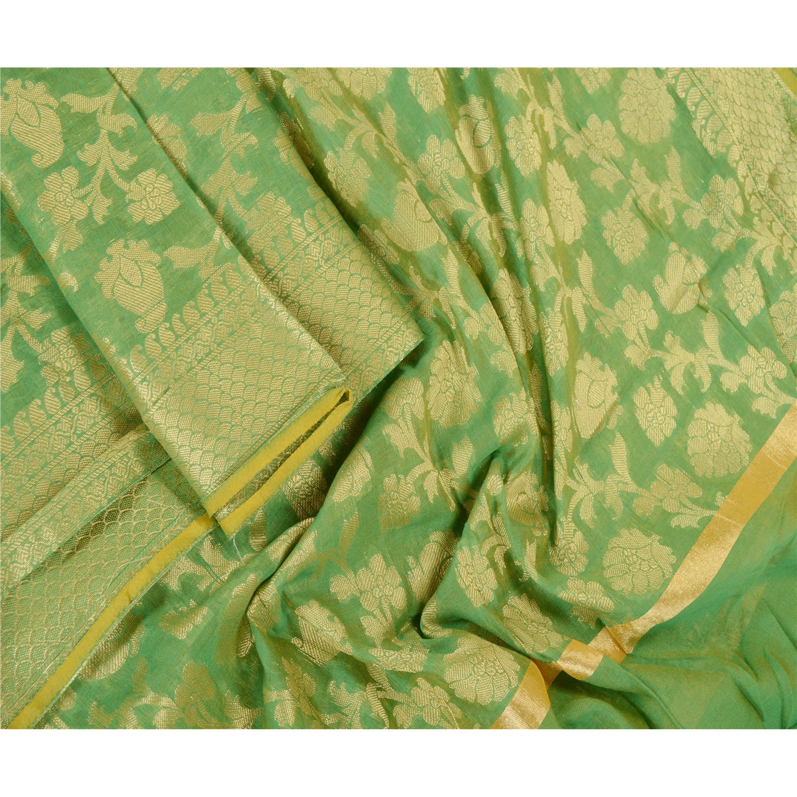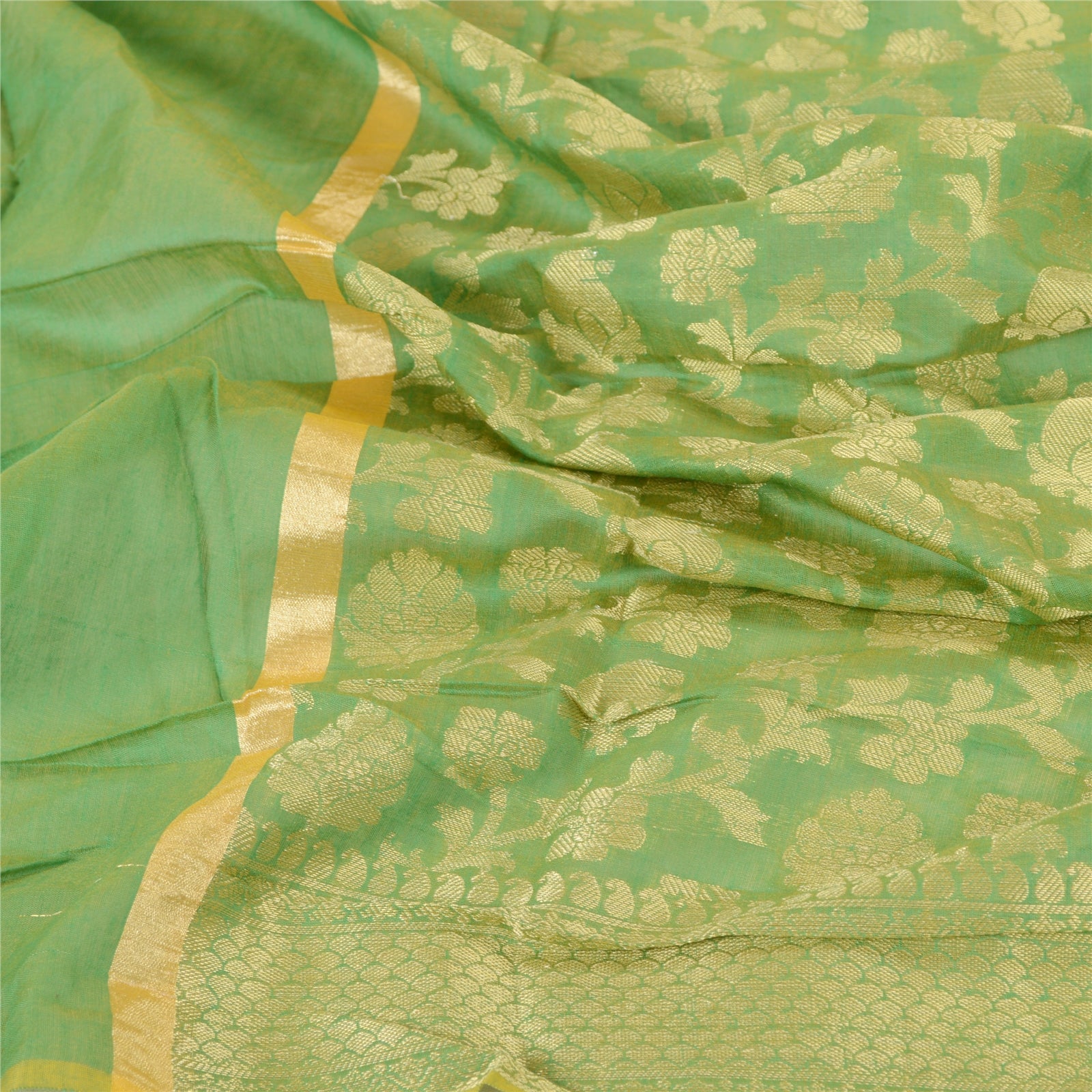 Sanskriti Vintage Dupatta Long Stole Chanderi Grønne vævede tørklæder