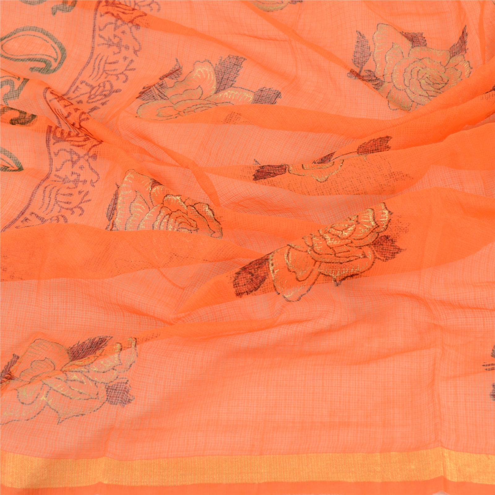 Sanskriti Vintage Dupatta Lang Stol Bomuld Orange Håndbloktrykt Kota Slør