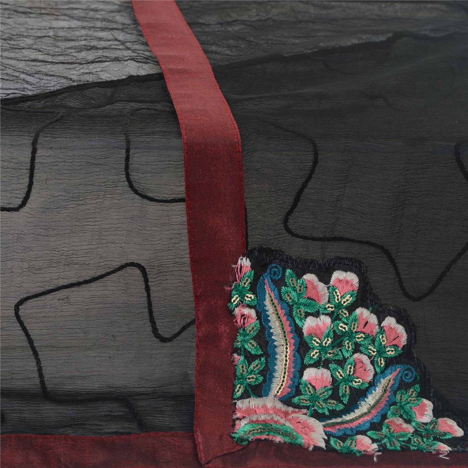 Sanskriti Vintage Dupatta Long Stole Net Mesh Black Hijab Hand Embroidered Veil