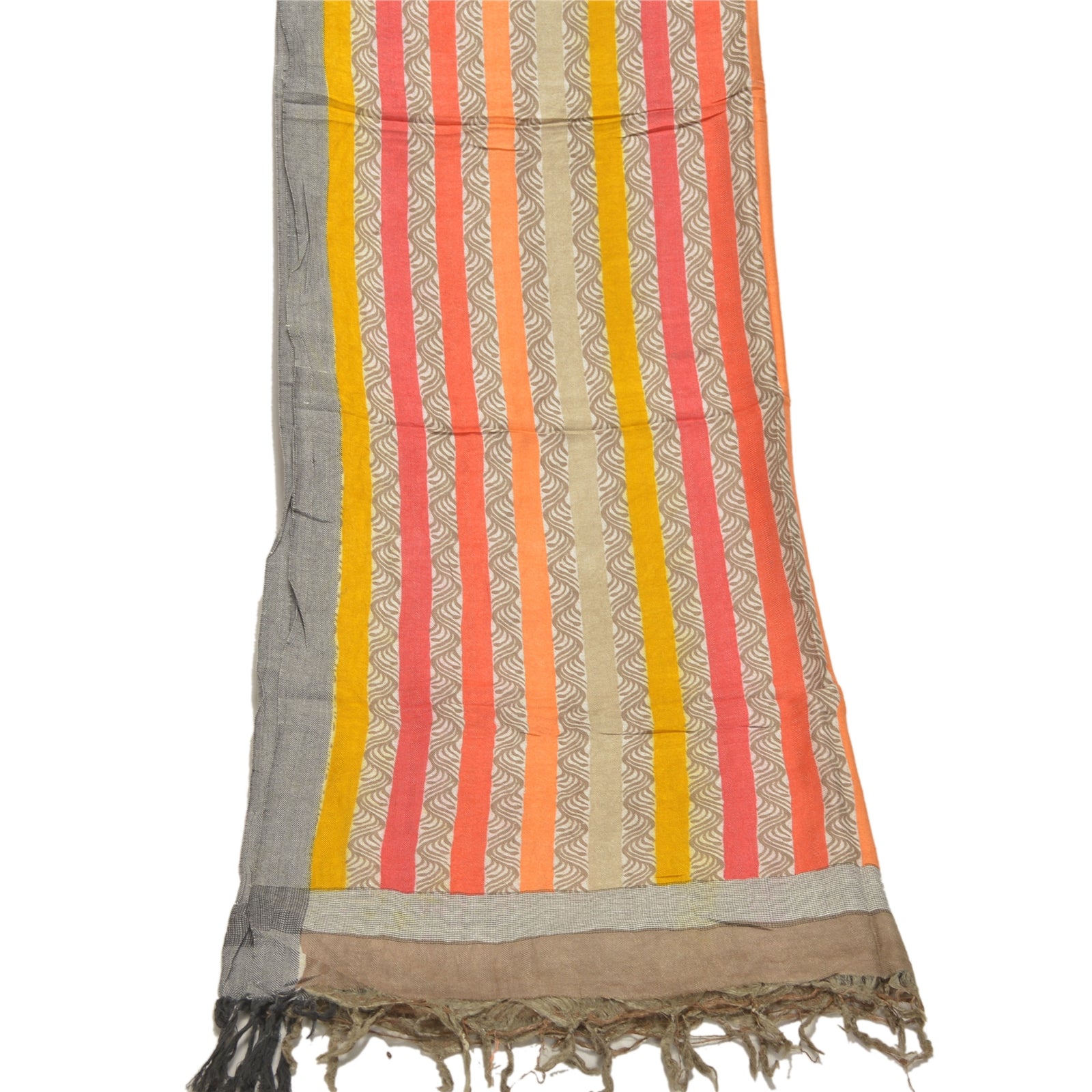 Sanskriti Vintage Dupatta Long Stole Pure Woolen Brown Wrap Shawl Printed Work